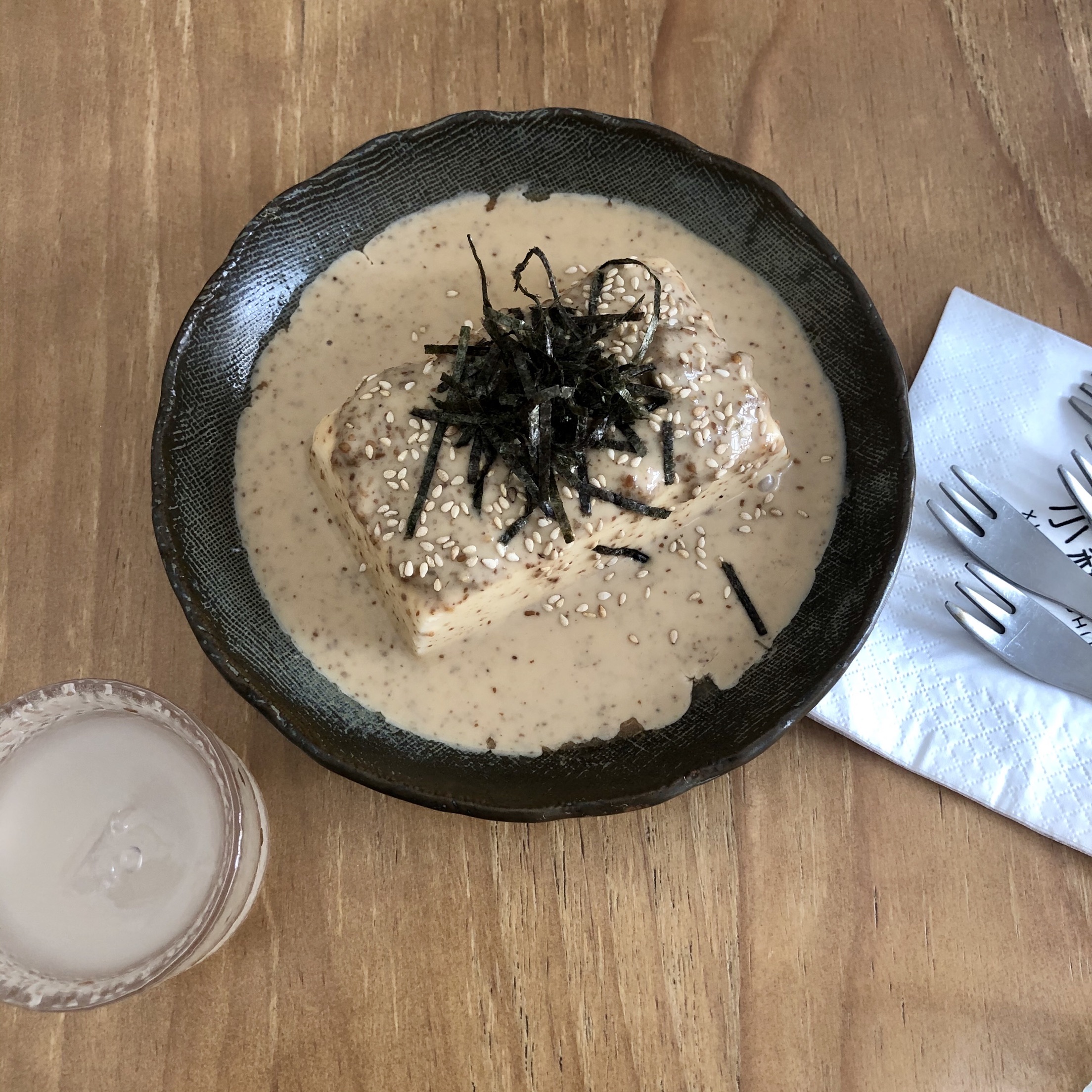 这个日系小食堂开在靠近湖边的地方,有阳光的天气简直不要太美,随便拍拍都是大片,店内的装修也很日系温馨,很好拍照!! 店内还有两只可爱的狗狗~公狗叫曲奇母狗叫肉松,坐在店内吃东西的时候两只小可爱时而打闹追赶真的太太太可爱了~ 我们四个人点了一个香肠芝士焗饭,芝士非常多咸香的饭配上咸甜的芝士,我可以!还点了牛油果拌饭,胡麻豆腐,胡麻豆腐的蘸料是烘培芝麻,豆腐很嫩,男朋友赞不绝口,看着他一口一口的吃完了哈哈哈哈我们点的彩虹水果沙拉,是我在店里吃过最新鲜的水果啦,樱桃超大一颗!还点了一份小米酒,甜甜的四个人一下就喝完了,意犹未尽啊!下次有时间还会再来滴!
