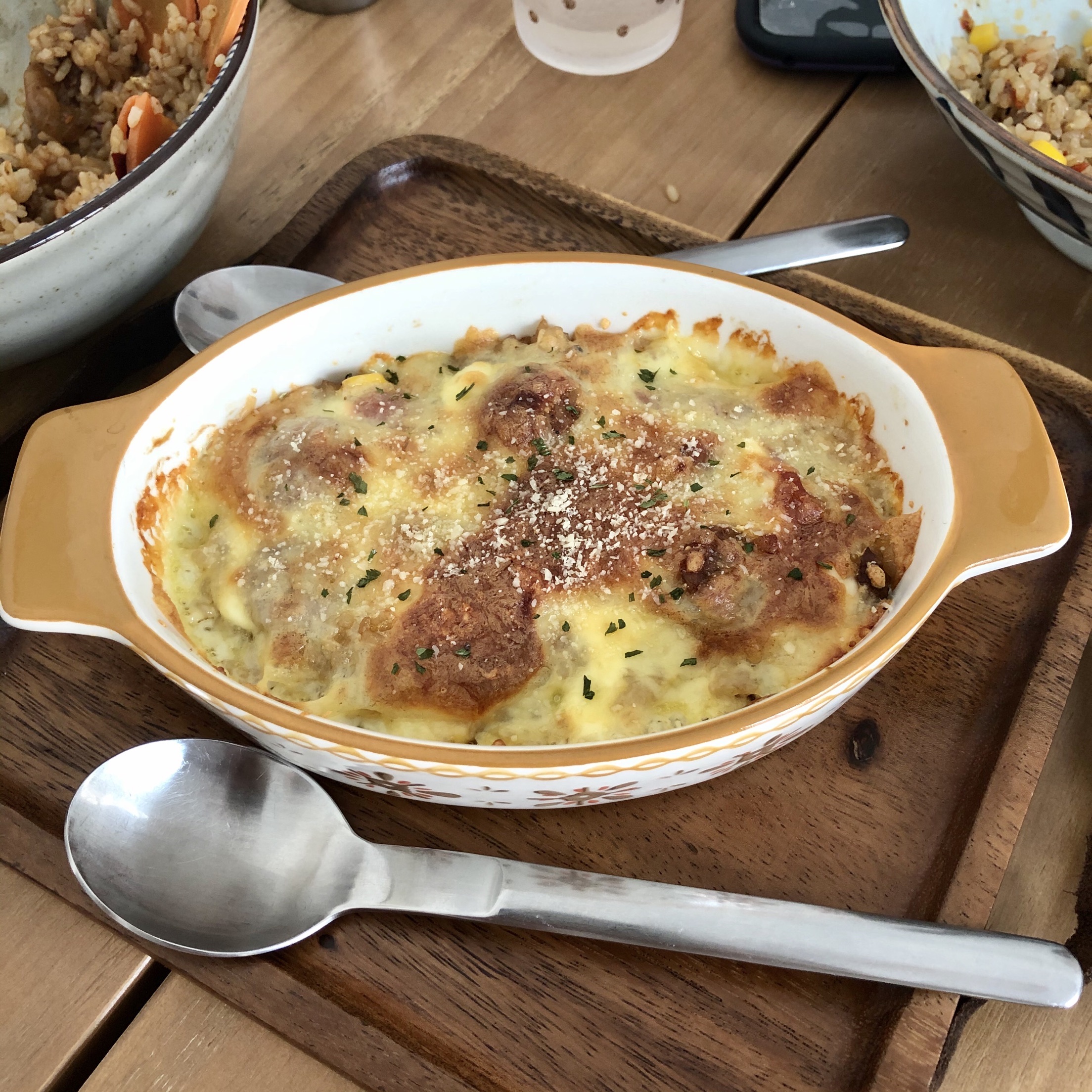 ...赶真的太太太可爱了~ 我们四个人点了一个香肠芝士焗饭,芝士非常多咸香的饭配上咸甜的芝士,我可以