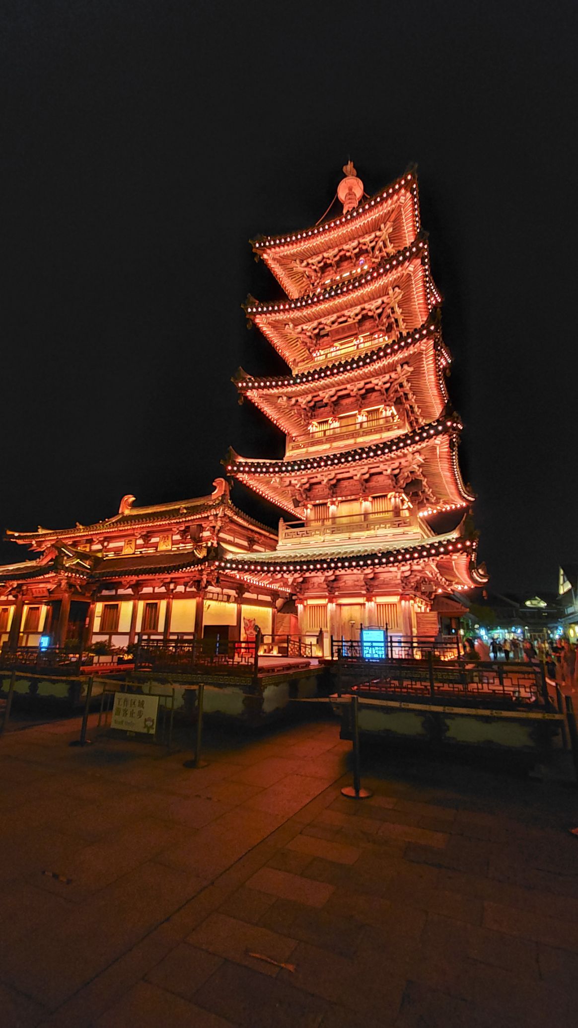 拈花塔位于拈花湾的香月花街之上,这座四方形状五层起底的塔刹,建造极为极致完美。拈花塔采用重唇板瓦,平添了庄严恢弘的气势,四角飞檐也做的极为精致,悬挂的风铃叮咚作响,如袅袅梵音。拈花塔逢整点还有各种表演,白天是舞蹈,晚上则是灯光秀,值得一看。