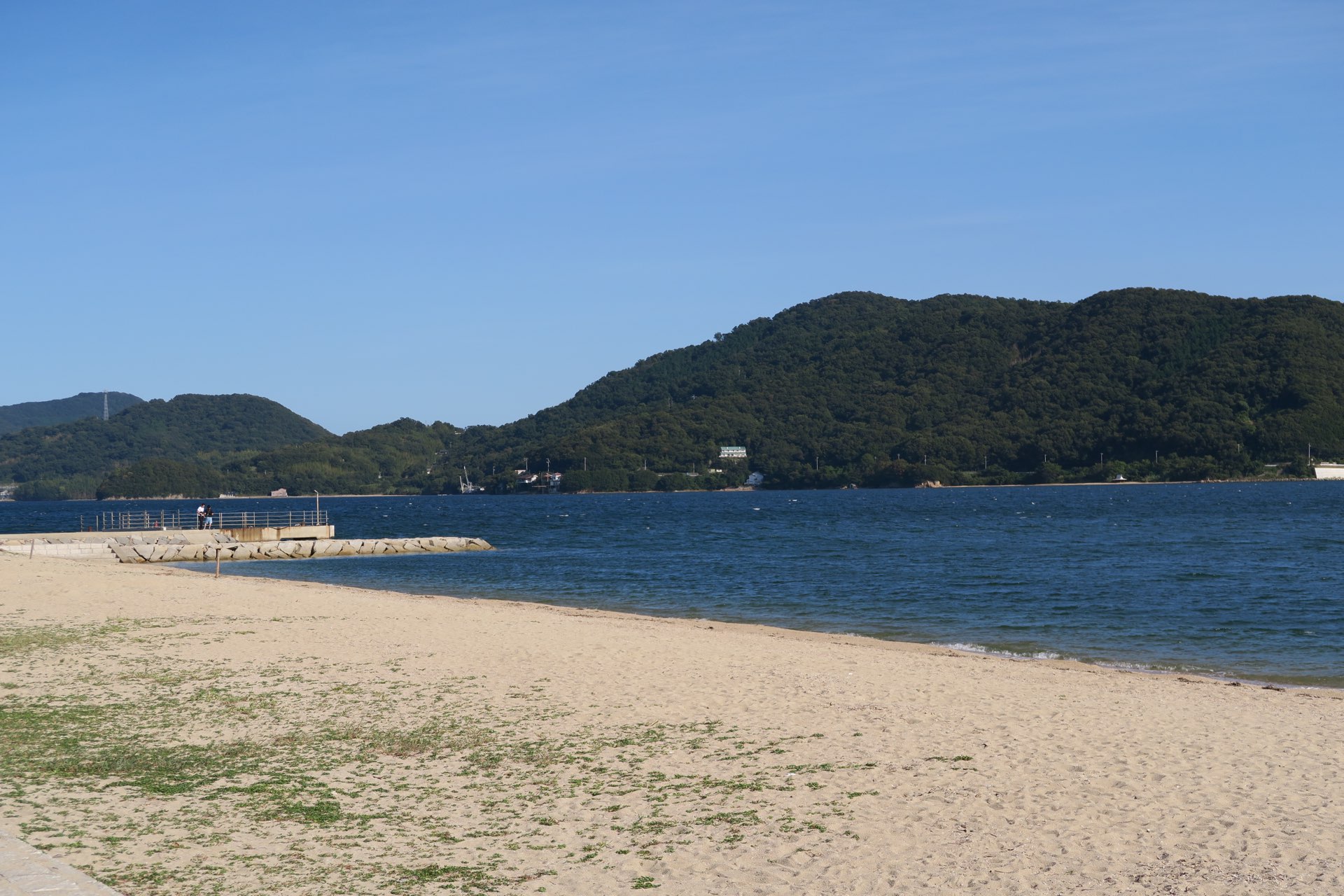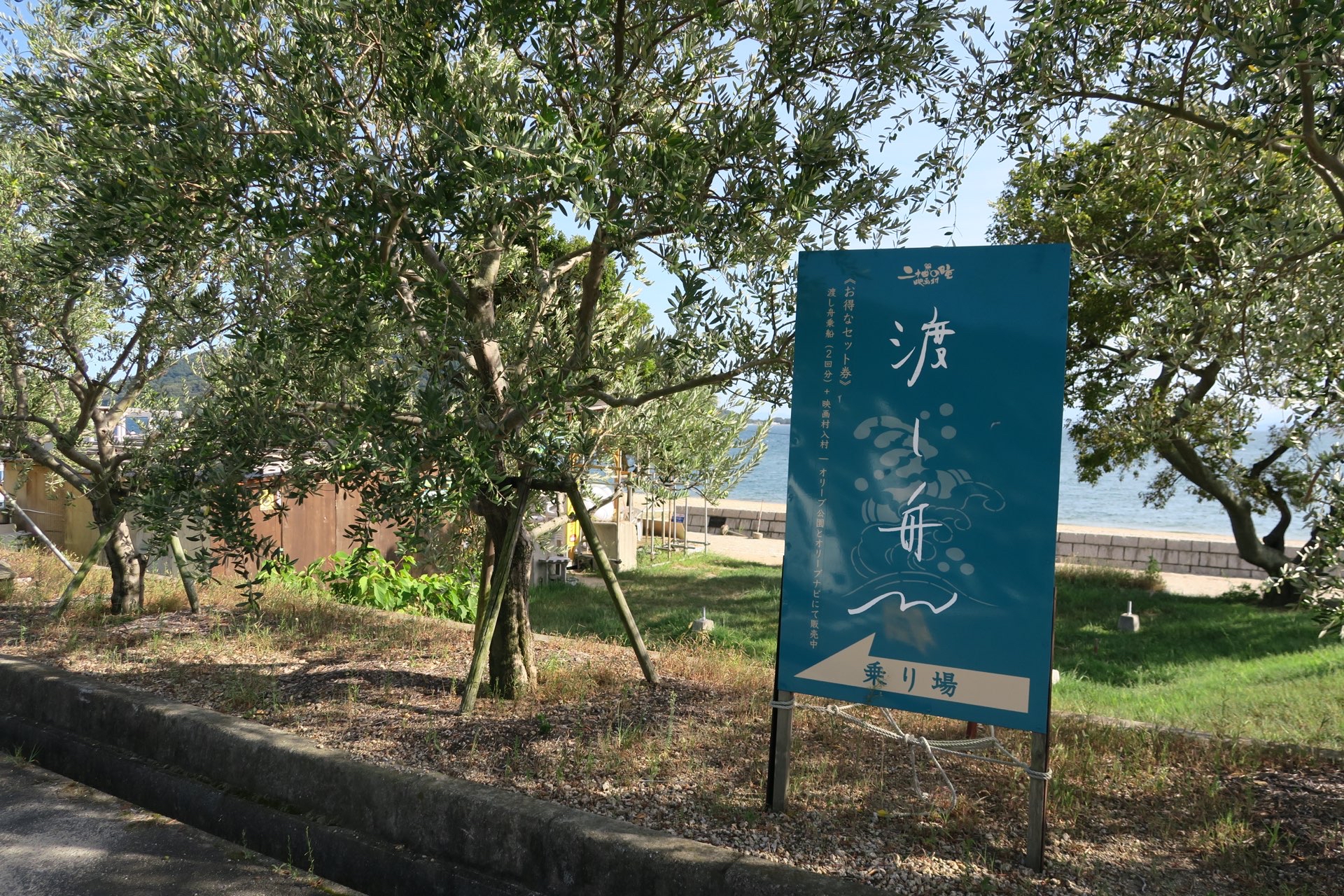 从橄榄公园的水泥大马路往坡下走,也就是大海的方向,走个几分钟就来到了沿海而建的公路,不管是往土庄港方向或是往二十四瞳映画村的方向,公车站就在马路的两边。公路对面的海边有一栋房子,是小豆岛观光协会的游客信息中心,自驾来的可以将车停在这里。海边是オリーブビーチ海水浴场,还有前往二十四瞳映画村的“渡舟”。