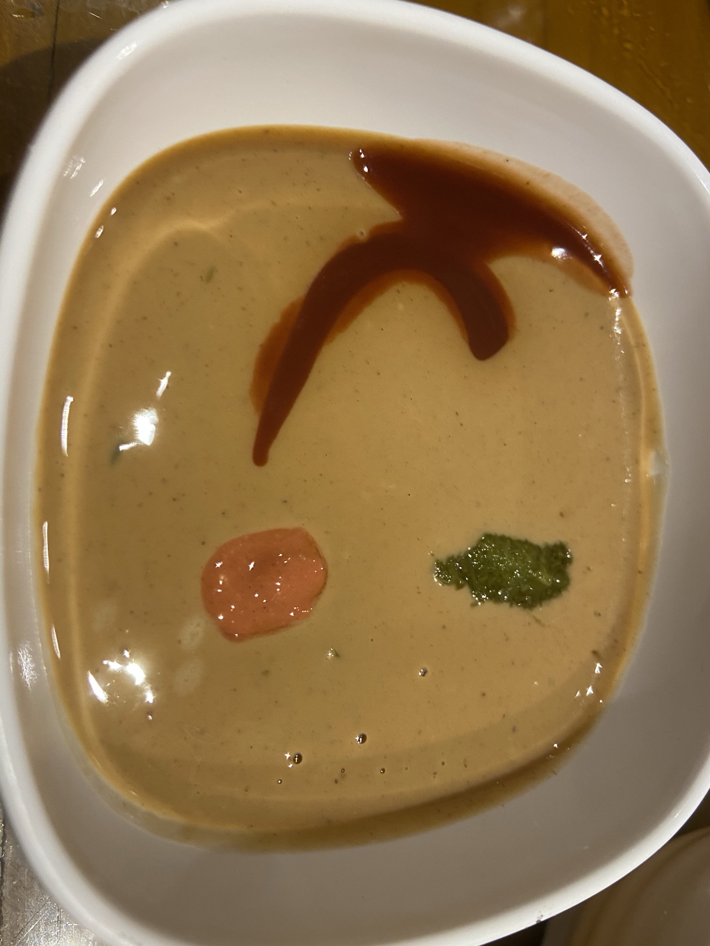 古铜老院很有名的,想吃铜锅直奔这里来了。 弱碱性清汤锅(赠羊尾油压桌小菜):我说羊尾油是用来提鲜的,娃爸眼睛亮晶晶的说,这肥而不腻,多好吃,就给吃了。下次试试它家滋补汤。 巴尔虎羊腱子:方方正正的一整盒肉,大份,厚肉片,但依然嫩。 老院三宝:一个食盒三层肉,看着量不大,但吃起来就会发现吃不完,肉片有整片的,有小片的,有签子肉。 糖火烧:它家推荐的主食,点了一个,红糖的味道很浓。 金牌糖饼:这个好喜欢,又酥又甜,红糖的甜不腻人。 一家三口子点了两份肉,娃爸起先还嚷嚷不够吃,但它家肉真的算实惠的,肉厚,但特别嫩,时间久了也不老,配上古法现磨芝麻酱,香啊!再来瓣糖蒜,爽啊! 给孩子营养均衡搭配了豆腐拼盘和茼蒿和杂面,儿子一边吃一边美,肉质嫩,就不怕孩子嚼不动。 店里伙计都是少数民族吧,挺有礼貌的,上菜也快,店里维护的环境也干净。 酒足饭饱,回家,明天欣赏大暴雨。