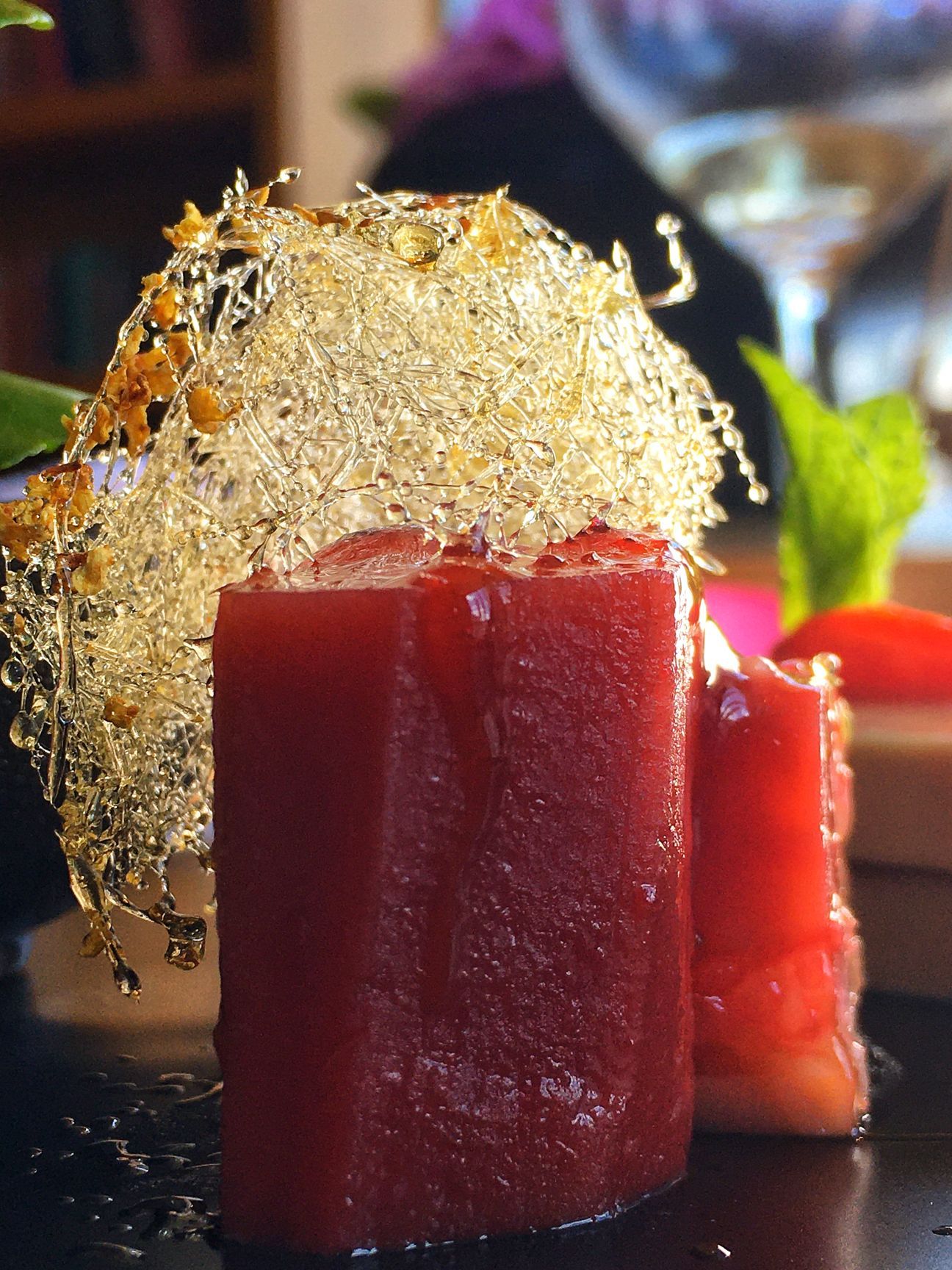 深夜发一组饮食美图,广州富力君悦大酒店空中花园餐厅推出了一系列以消夏为主题的美食,今天中午评鉴的时候,我觉得师傅有些用力过猛了,用料和工艺都没有问题,只是营养太过丰盛,让人有些“夏不了台”,没想到中国摄影家协会首任美食摄影部何文安主任,居然可以用手机就把这一组菜肴拍得有些冰清可人。 真个是“视觉构建了我们的太虚幻境,味觉铺陈了我们的现实生活”。