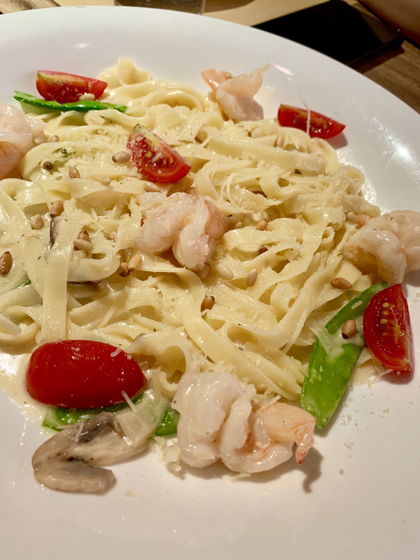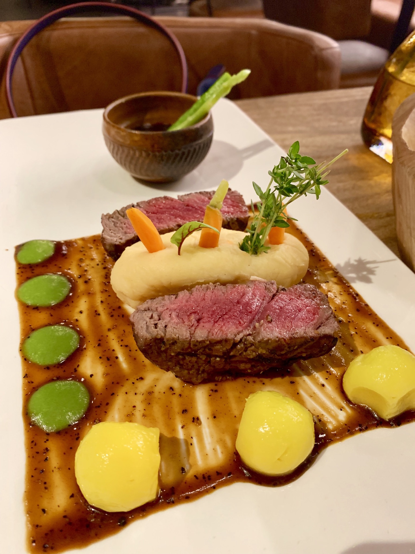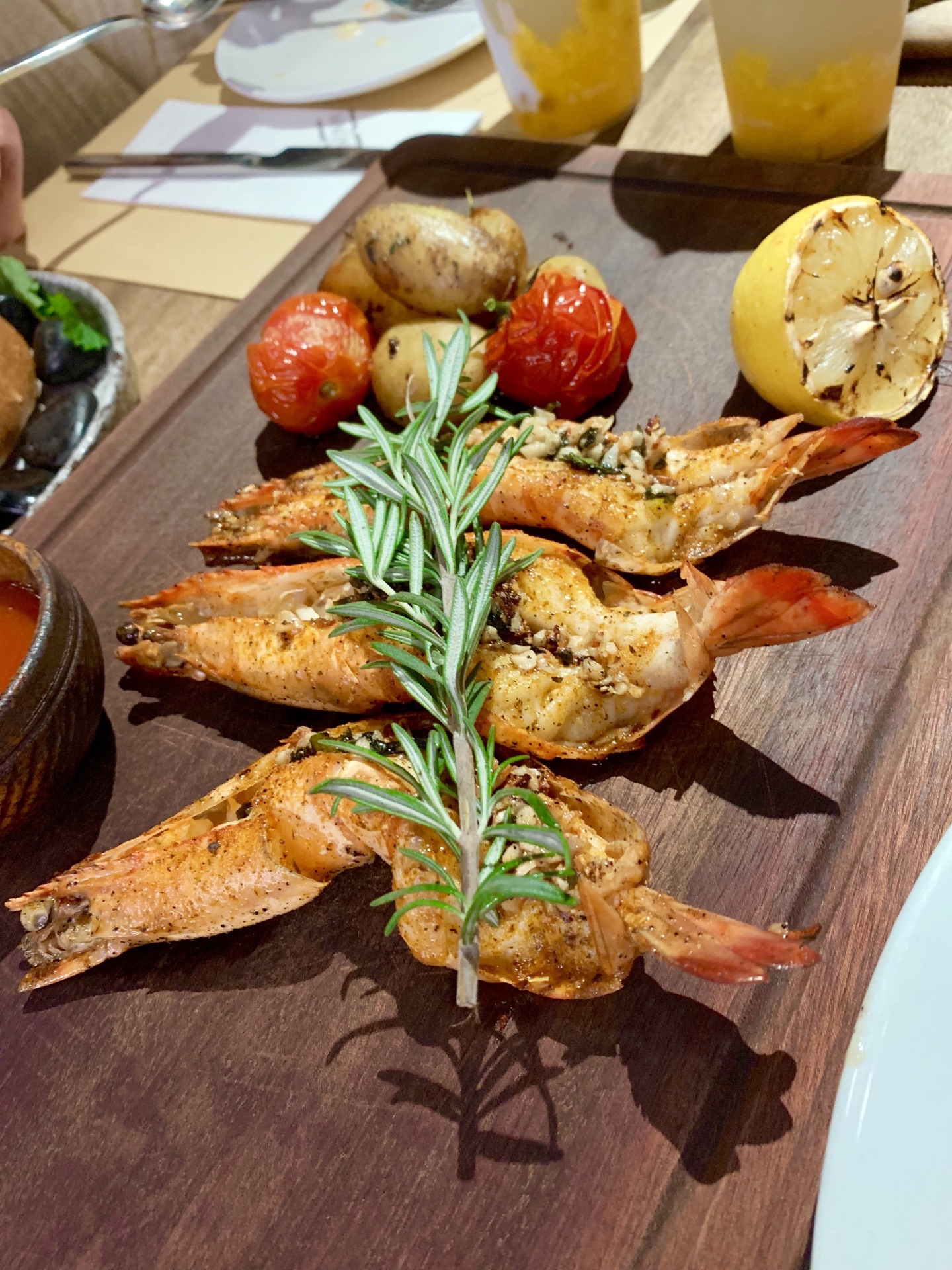 主菜选了牛排,感觉肉质一般般,煎得恰到好处,很嫩,不用配酱更喜欢原汁原味。大虾另点、感觉很普通