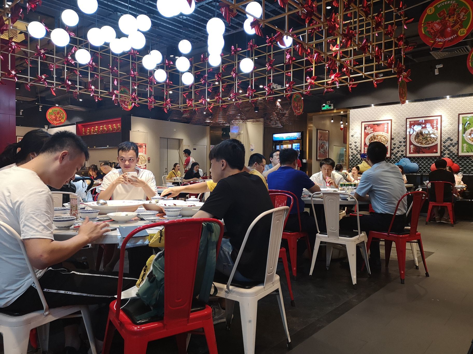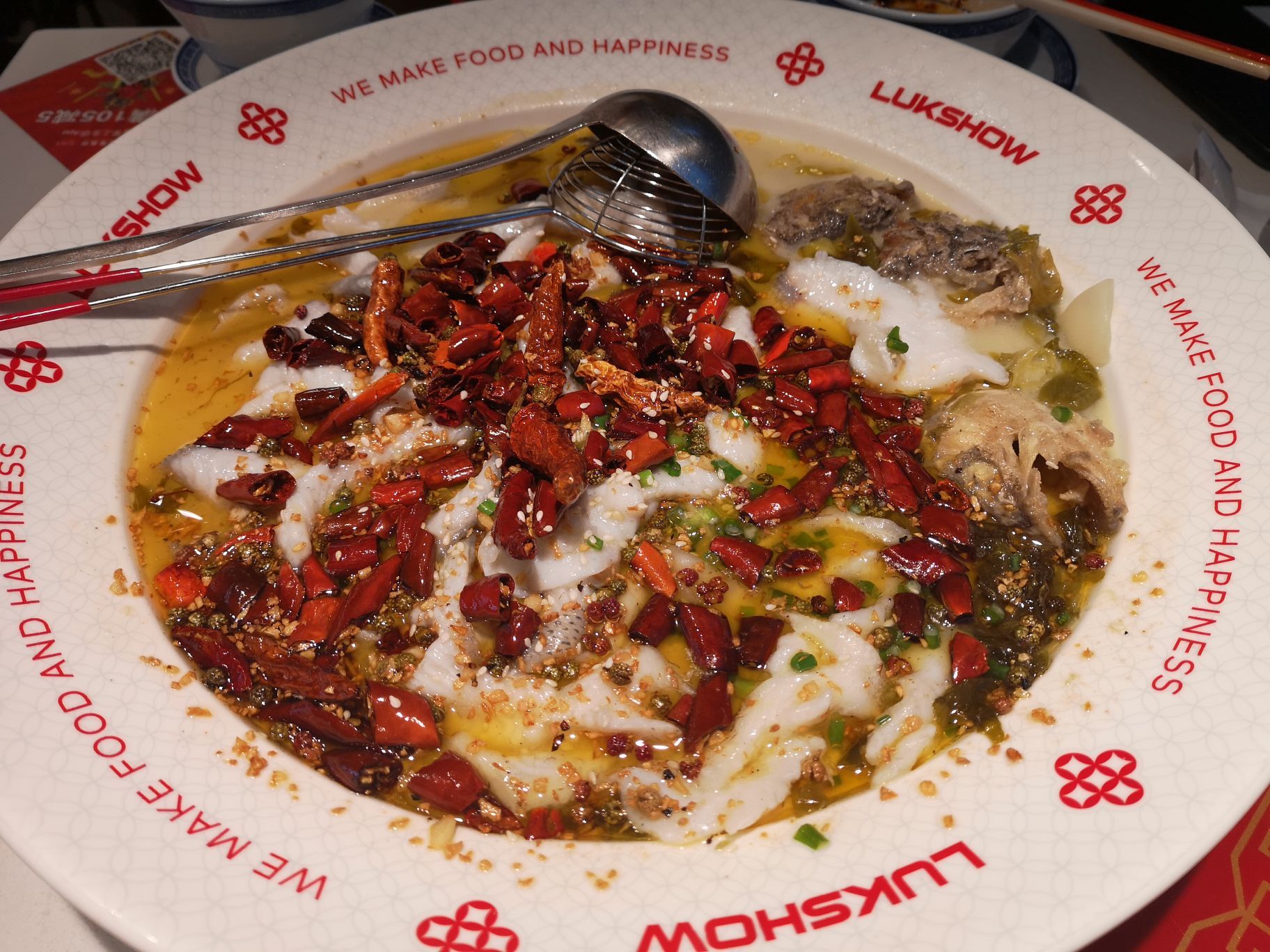 位于侨鑫国际商场二楼,连锁酸菜鱼专门店,装修风格都是中国式的红红火火恍恍惚惚,进店就闻到一股香浓的辣椒油味,晚饭时间基本都要等位,建议提前拿号。个人比较喜欢这里酸菜鱼的口味和配菜选择多,出品的鱼肉嫩滑,没有鱼腥味,推荐配肥肠和金针菇,不能吃辣的也可以试试爆炸葱香味或黄金蒜香味,口水鸡作为前菜比较开胃,鸡肉有点弹牙,鸡皮不肥;上汤豆苗鲜嫩可口,汤底浓郁,也适合解辣;饭后再来个红白甜品,清凉一下,甚是满足。总体来说服务比较到位,出品各分店水准一致,能加大优惠力度会更亲民