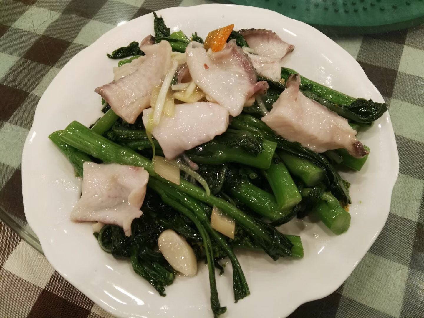 登丰海鲜酒家位于西华路,附近有多个公交车站,交通便利。 这是一家粤菜餐厅,店面不很大,装修的古色古香。 生鱼片炒菜心 镬气很足,生鱼片无骨爽口,菜心无渣。 豉油鸡 皮爽肉嫩,味道是咸中带点甜味。 卤水掌翼 掌翼焖得很淋很入味。 豉汁蒸鱼头 火候正好,非常好吃。