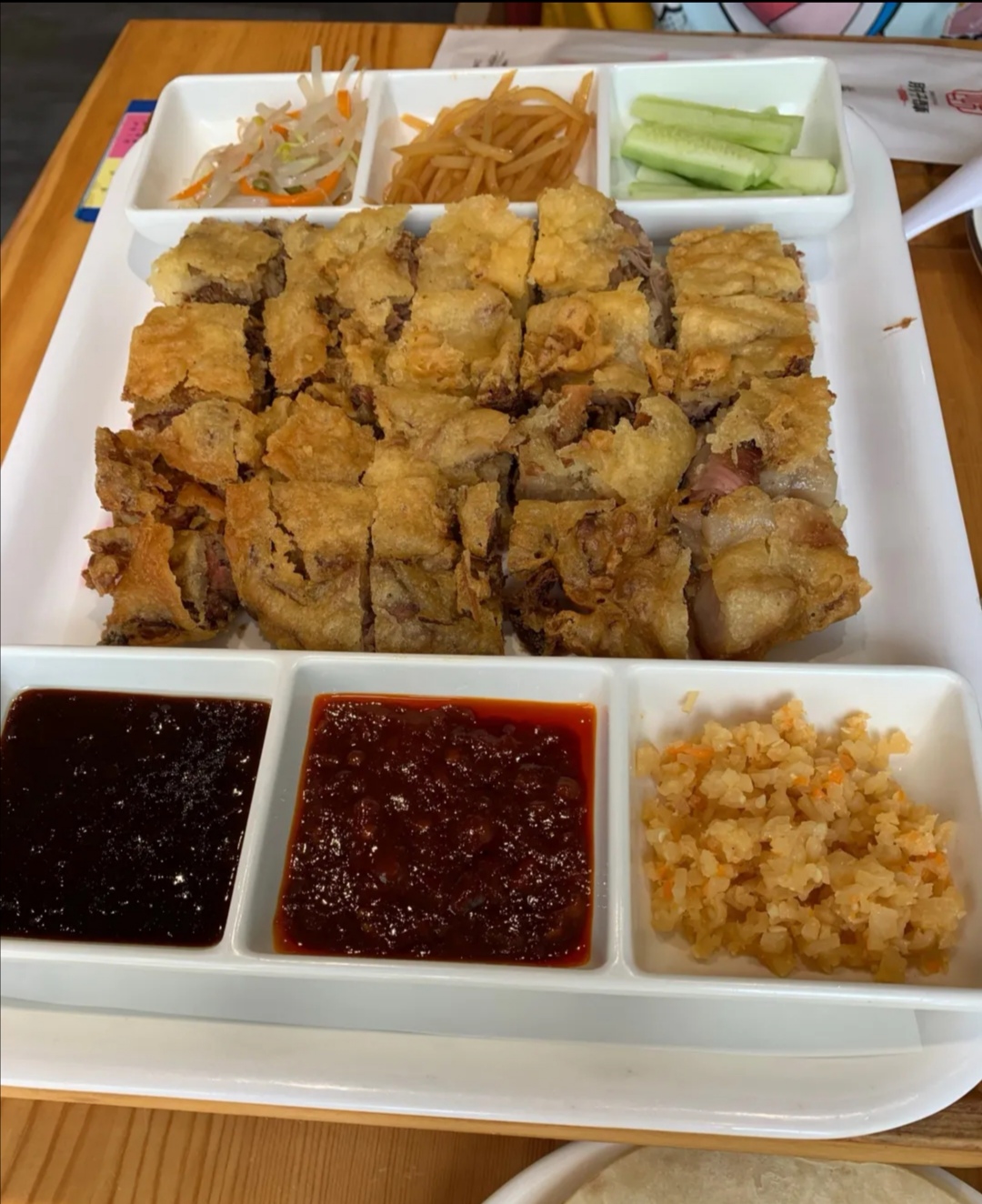 店里感觉人不是很多的样子,肘子酥是真好吃 卷饼吃了好几个店里感觉人不是很多的样子,肘子酥是真好吃 卷饼吃了好几个~有的是烤的焦焦脆脆的,有的是肥肥的,都很不错。其他的菜也很好吃,量也很大,正经天津味道,非常喜欢。