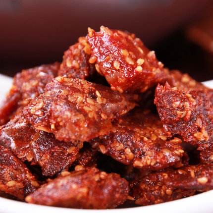 网友2020-08-22张飞牛肉很好吃,因其外观特征为“表面墨黑内心红亮”恰好和猛将张飞的形象相似,故称“张飞牛肉”张飞牛肉很好吃,因其外观特征为“表面墨黑内心红亮”恰好和猛将张飞的形象相似,故称“张飞牛肉”。剖其横格,轻撕切面,如银丝松针相联,细细咀嚼,其味无穷。