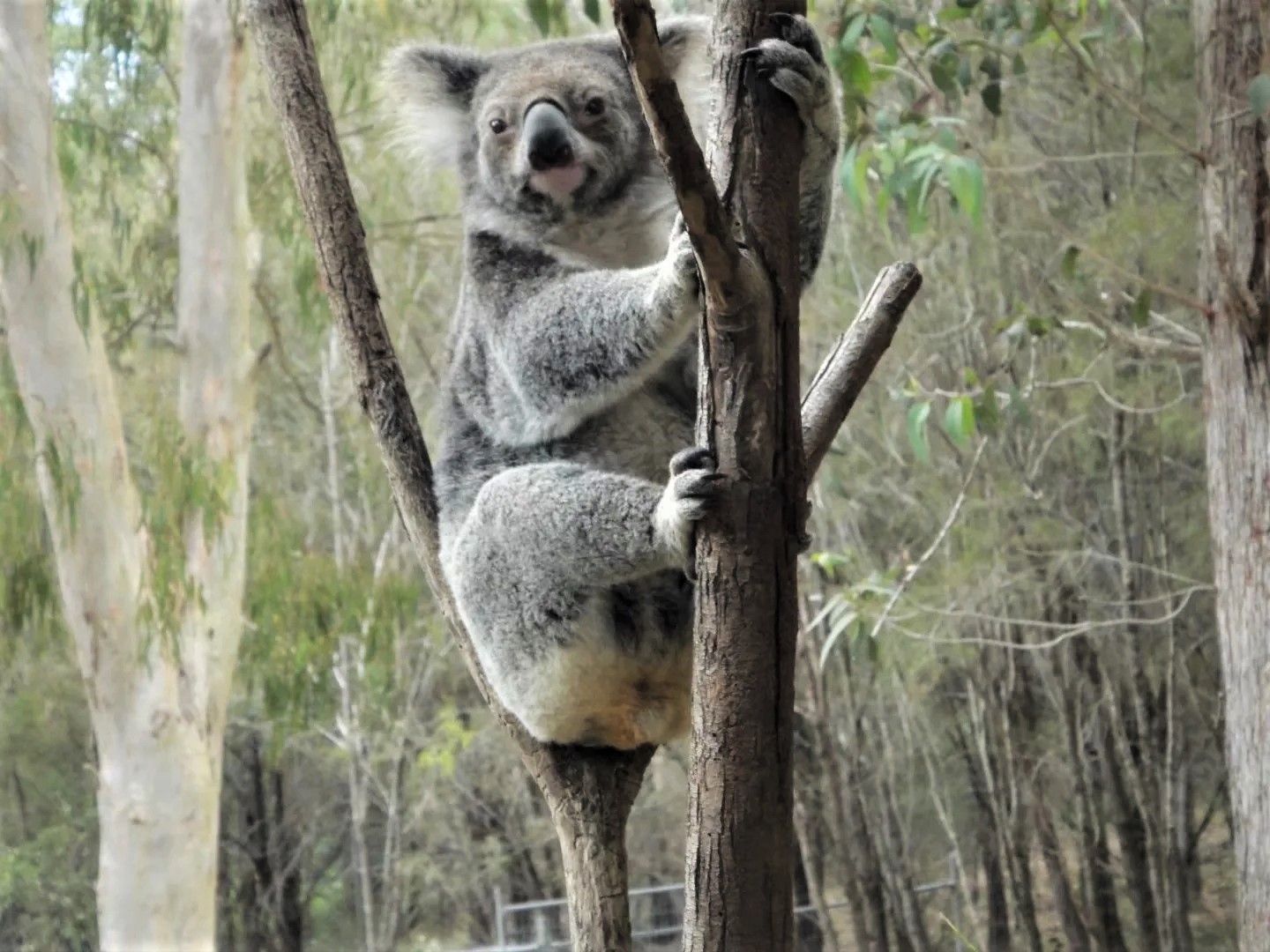 树袋熊(别名 考拉)树袋熊属动物,体形肥胖,毛又乱又厚,没有尾巴。树袋熊大部分的时间都是在树上度过的,几乎终生都在桉树上度过。其白天的许多时间都用来睡觉,只有不到10%的时间用来觅食,而其他的时间主要花在静坐上。树袋熊几乎从不下地喝水,它们以桉树叶为食,每天能吃掉许多的桉树叶,而且消化良好。分布于澳大利亚(新南威尔士州、昆士兰州、南澳大利亚州、维多利亚州)。