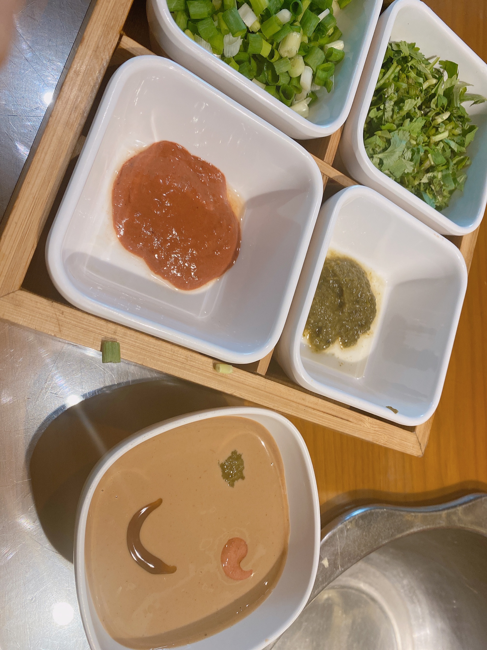 来北京就要吃正宗的老北京涮肉!麻酱➕香菜,再来个蒜 马不停蹄地到了店里赶紧点菜,好在上的都非常快