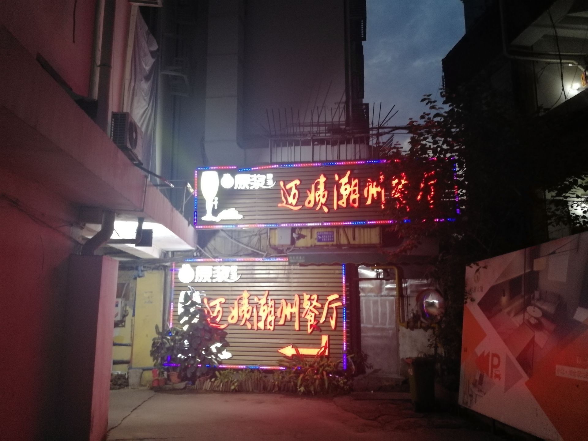 这家迈姨餐厅位于巷仔里的停车场旁,如果不是跟着导航来也不知道这里有间潮州菜餐厅。 周末晚上来到还挺多人的,这里的主打潮州菜,价格比之前常去的一家潮州菜稍微贵一些。原本想点蚝烙,但可惜蚝都卖光了。点了大家都推荐的炒薄壳,小小的一颗,肉还挺饱满的,味道也很香很不错。白灼鱿鱼,鱿鱼很新鲜,口感偏软软的,可惜就是份量太少。卤水鹅肝,卤水的味道不太够,有点淡,味道感觉一般般。牛肉炒芥兰,牛肉炒得比较老。总体感觉一般般。