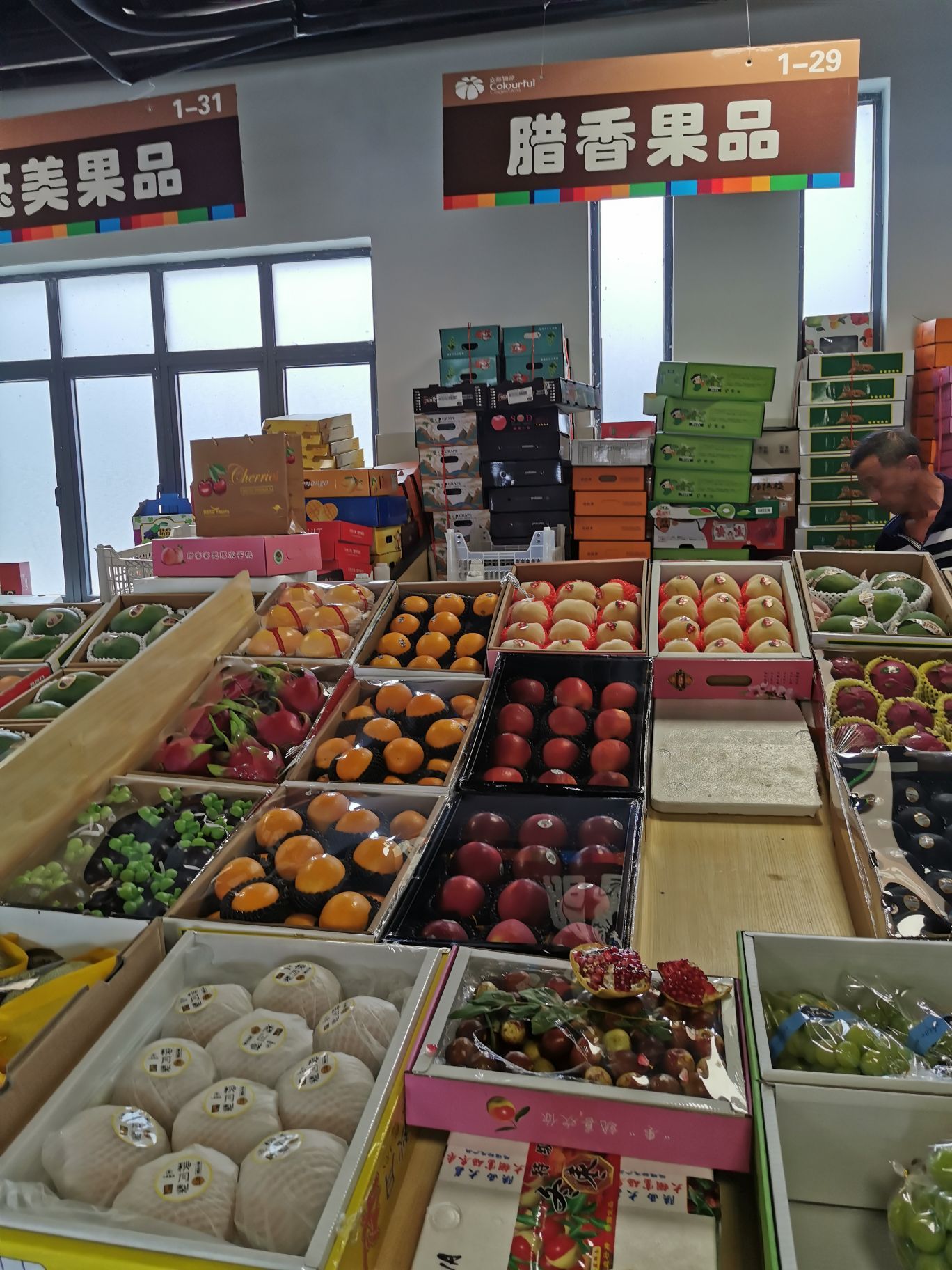 江宁区最大的一个果蔬批发市场,对于酷爱吃水果的我基本每隔一段时间都会来一次。 环境:每次都选择到精品区,市场里面干净卫生整洁,关键是还有空调。 这一次选择了腊香果品家的水果,它们家水果品种齐全,关键是每一种都可以先品尝后购买。 服务:小美女的服务棒棒哒!每一个品种的水果都给我们品尝了,搞得我不买都不好意思了,价格也经济实惠,大件包装的和礼盒包装的水果都有,还会帮忙送货上车了。
