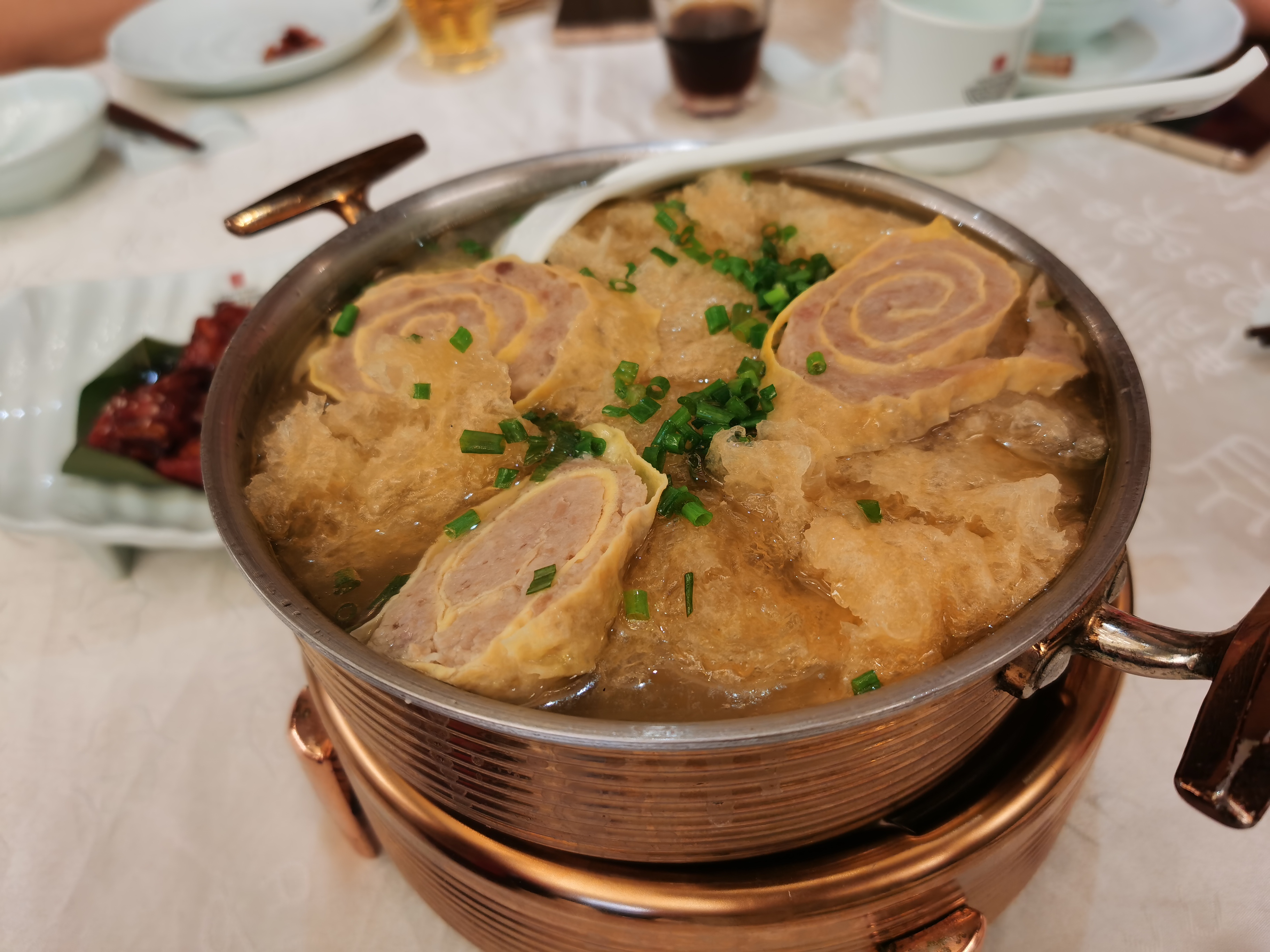 餐厅开在古城公园内,走进去环境蛮不错。餐厅规模还蛮大的,装修带有古典文化韵味。接待蛮热情引领就坐倒上茶水。 糖醋小排38元肉质酥嫩,酸甜香咸。肉皮汤58元(小份)料没有图片上的多,肉皮肥厚酥松吸收了汤汁非常鲜美,配有蛋卷、鱼丸等。吊烧琵琶鸭48元(半只),皮酥肉嫩咸香入味,不过鸭很瘦小肉不多。本帮扣三丝98元,非常吃刀功的一道菜,鸡丝、火腿丝、笋丝在鸡汤的浸润下,口感纤细酥松味道鲜香清爽。水晶虾仁88元河虾仁腌发过口感紧实弹滑,味道烧得比较偏淡不鲜。铁锅菜饭30元小铁锅盛上,用卷心菜、香肠、咸肉烧的,米饭有灶头锅气咸香柔糯。招牌热熏鱼38元很晚才上来,刚煎好很热透,鱼皮焦脆鱼肉香酥酱汁浸润渗入咸鲜回甜。干锅腊肉花菜48元花菜蛮酥润腊肉鲜咸酥香。 菜品都是比较传统的本帮经典,部分菜味道还是家常了一些。菜品价格不是很贵但菜量不大。环境还是比较整洁舒适,主管的服务态度比较好其他就一般了。