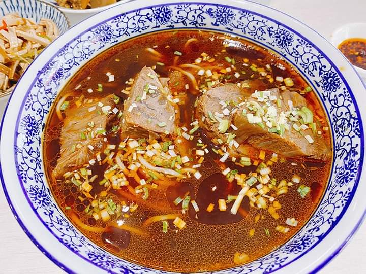 平常想吃牛肉面的话,以光顾熟悉老店居多。这回特别选上这间最近才开的清新小馆。一走进店内,纯白色系的用餐空间呈现出新颖明亮。柜台前的各式功夫小菜。这回所点的原汁牛肉面汤头风味与众不同,炖煮至软烂入味的美国牛腱心令人很惊艳!这大块牛肉让牙口不好的老人家都能尽情享用,小菜选用可见功夫真章的宁式烤麸和麻辣香干、小黄瓜来搭配牛肉面。
