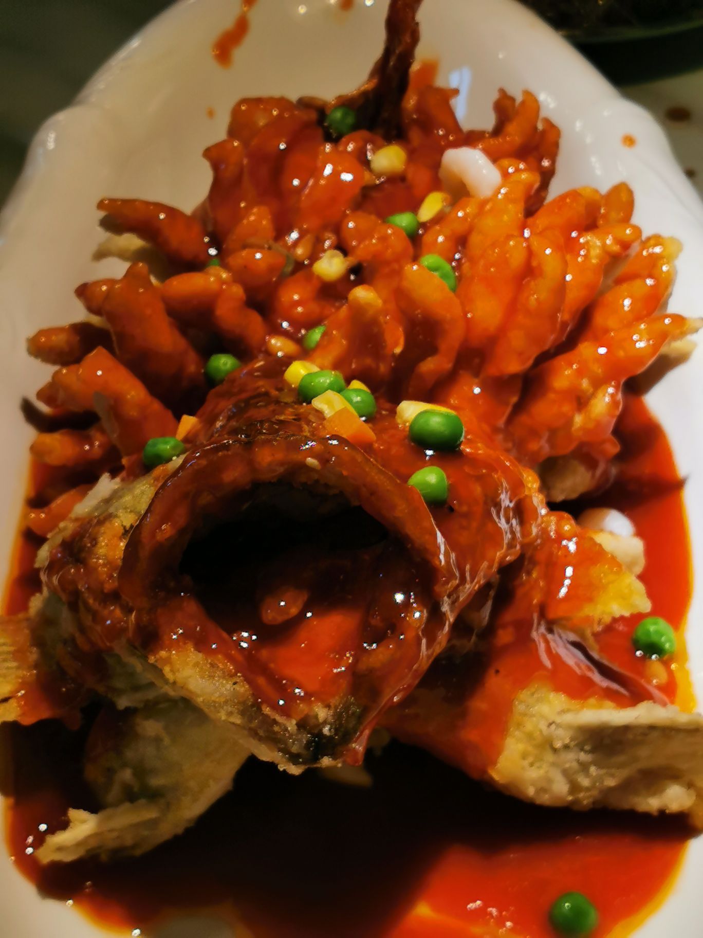 苏州观前街附近必须推荐的饭店之一,这里都是正宗的苏州美食,价格也比观前街几家老字号便宜多了,所以当地人的人气更旺。事实发现,找当地人来的多的店绝对不会吃亏。 店内菜品基本都是有名气的本地菜,量也都很足。松鼠桂鱼价格还算合理,作为苏州名菜,口感偏甜但是很好吃。醉虾这个是不错的,调料非常入味,虾也都是活的很新鲜。鳝糊是特色,这个也是必点菜之一,量很足而且颜色很开胃。 还点了红烧狮子头和蟹粉豆腐,真的都是给力,2个人吃了很多还打包了2大盒,真心不错,现在吃到挺正宗性价比还高,这家店应该算一个了。