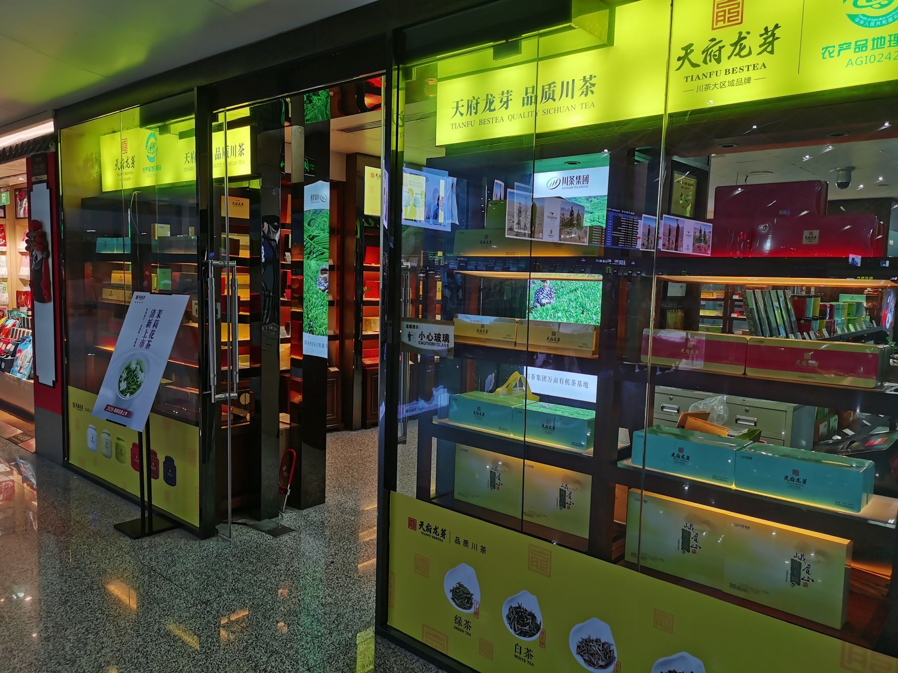 ...边的峨眉山白茶,还有天府龙芽之类的,都是他们家比较好卖的,也可以进去里面品尝一下四川茶叶的魅力在这边收藏了很多,四川当地比较出名的茶叶,比如说这边的峨眉山白茶,还有天府龙芽之类的,都是他们家比较好卖的,也可以进去里面品尝一下四川茶叶的魅力。