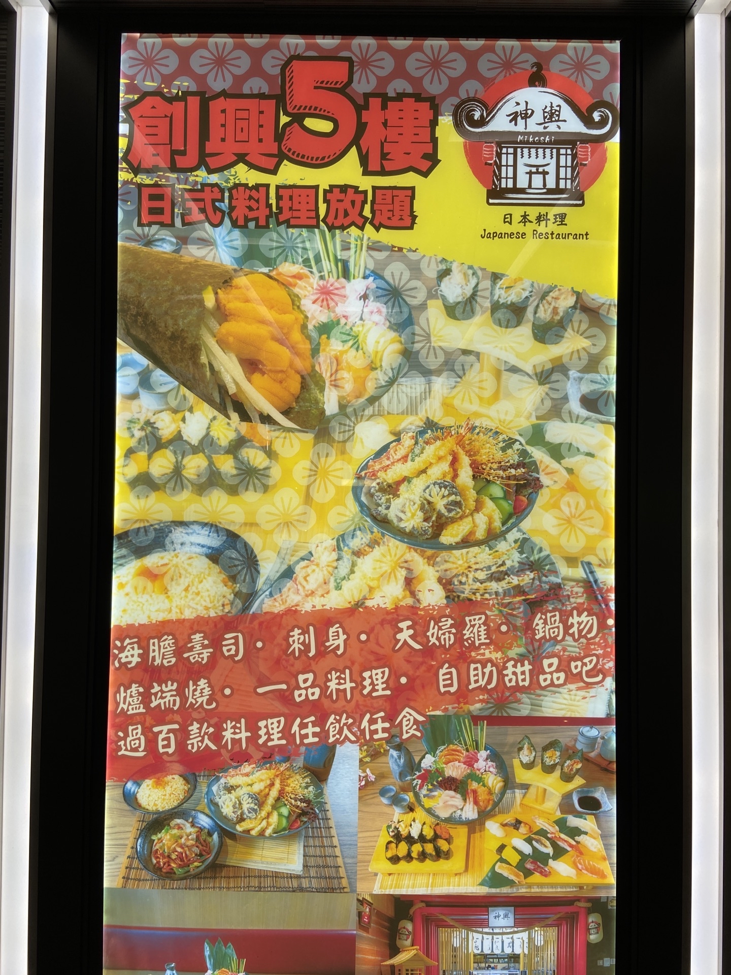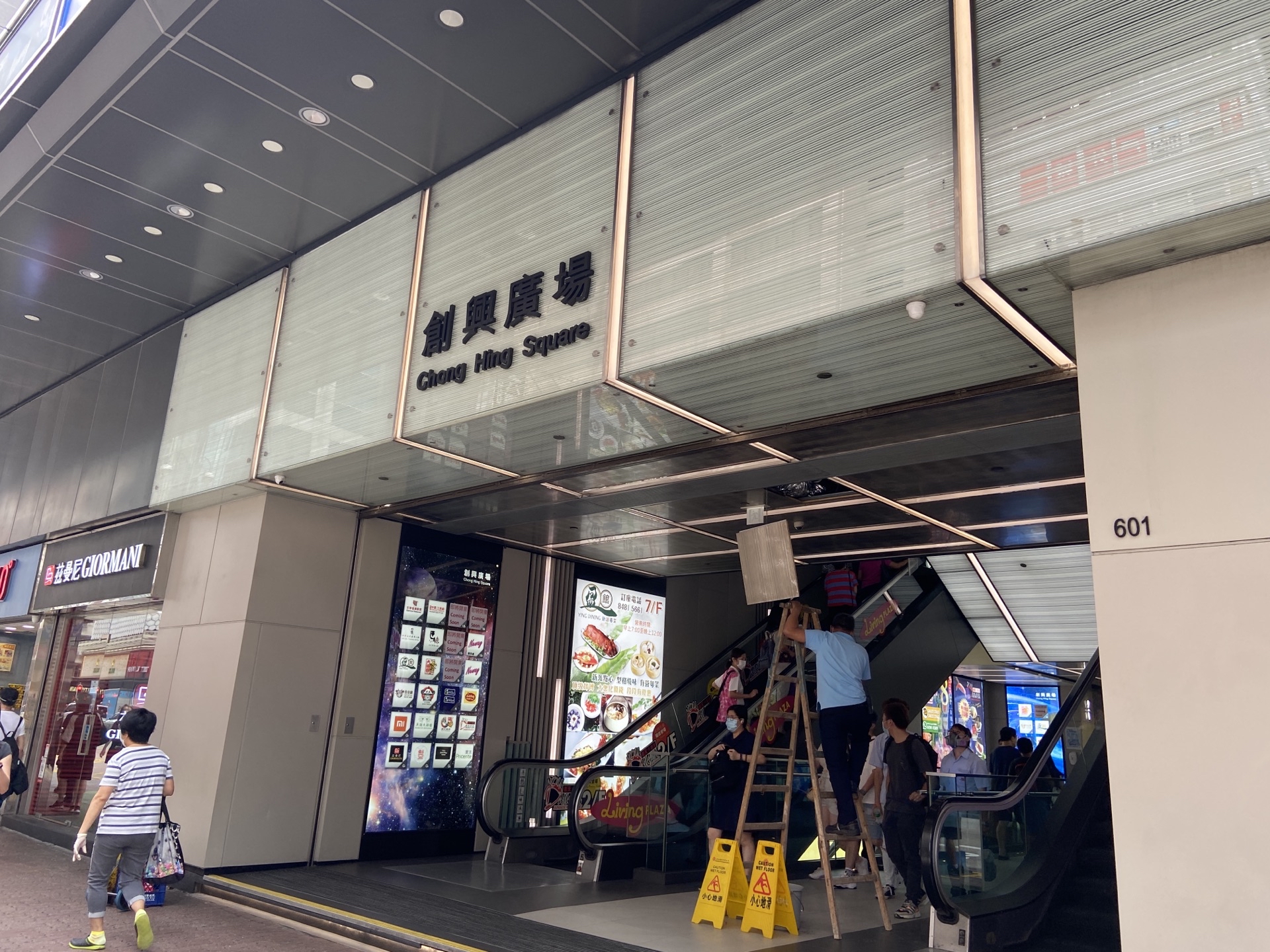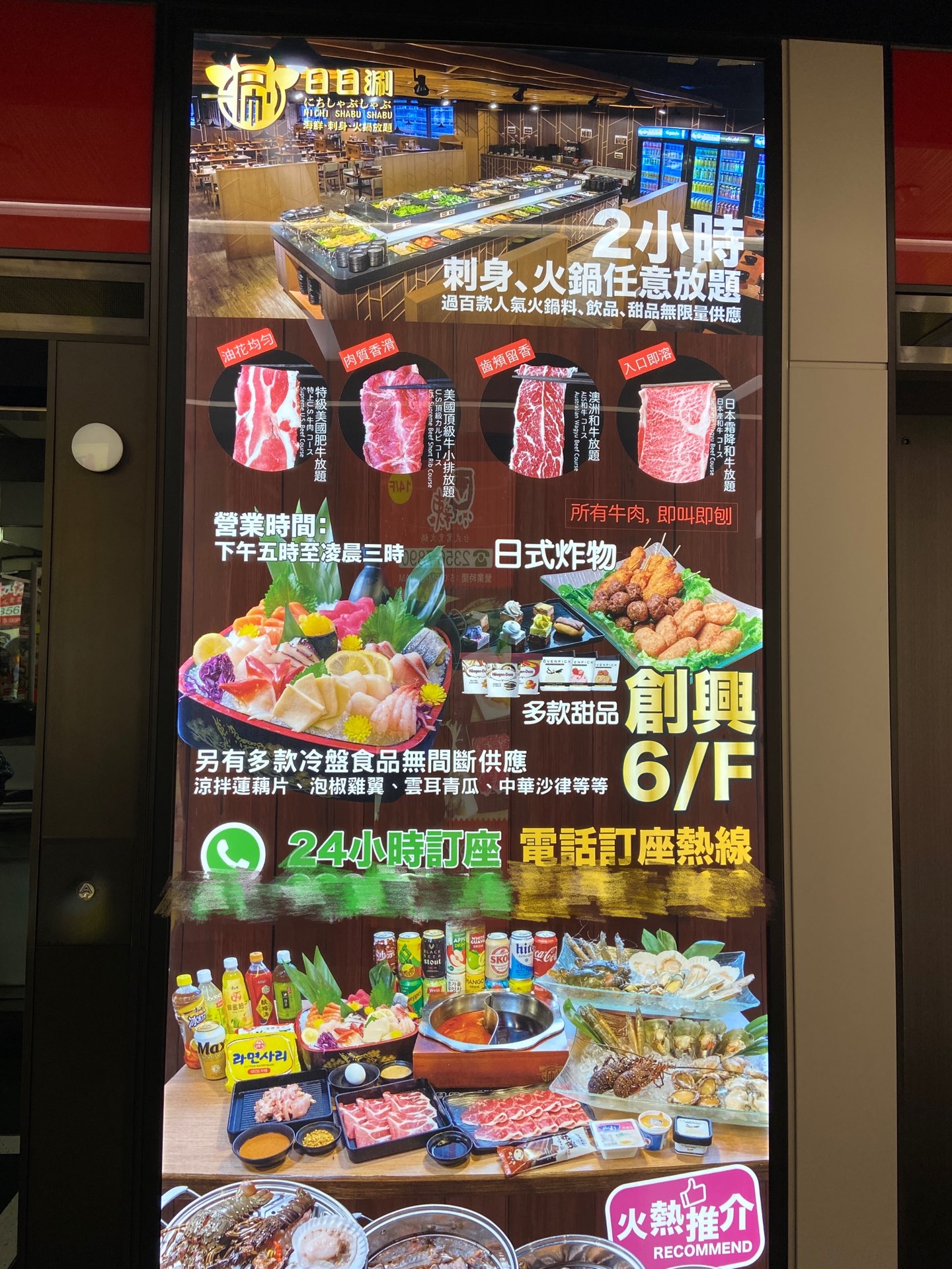 弥敦道段的长沙街与豉油街之间一整排的大楼全部都是创兴广场,临街最主要的店铺都是小米手机店,面积很大,算得上是小米在香港的旗舰店了。另一边的店铺是面包秀和一家优品360。而进到大楼里面发现花花绿绿的广告很多,全部都是餐饮店,每一层楼都是不同的餐厅,喜欢吃日料的来这里会有很大的收获,有两小时的刺身和火锅任意放题。