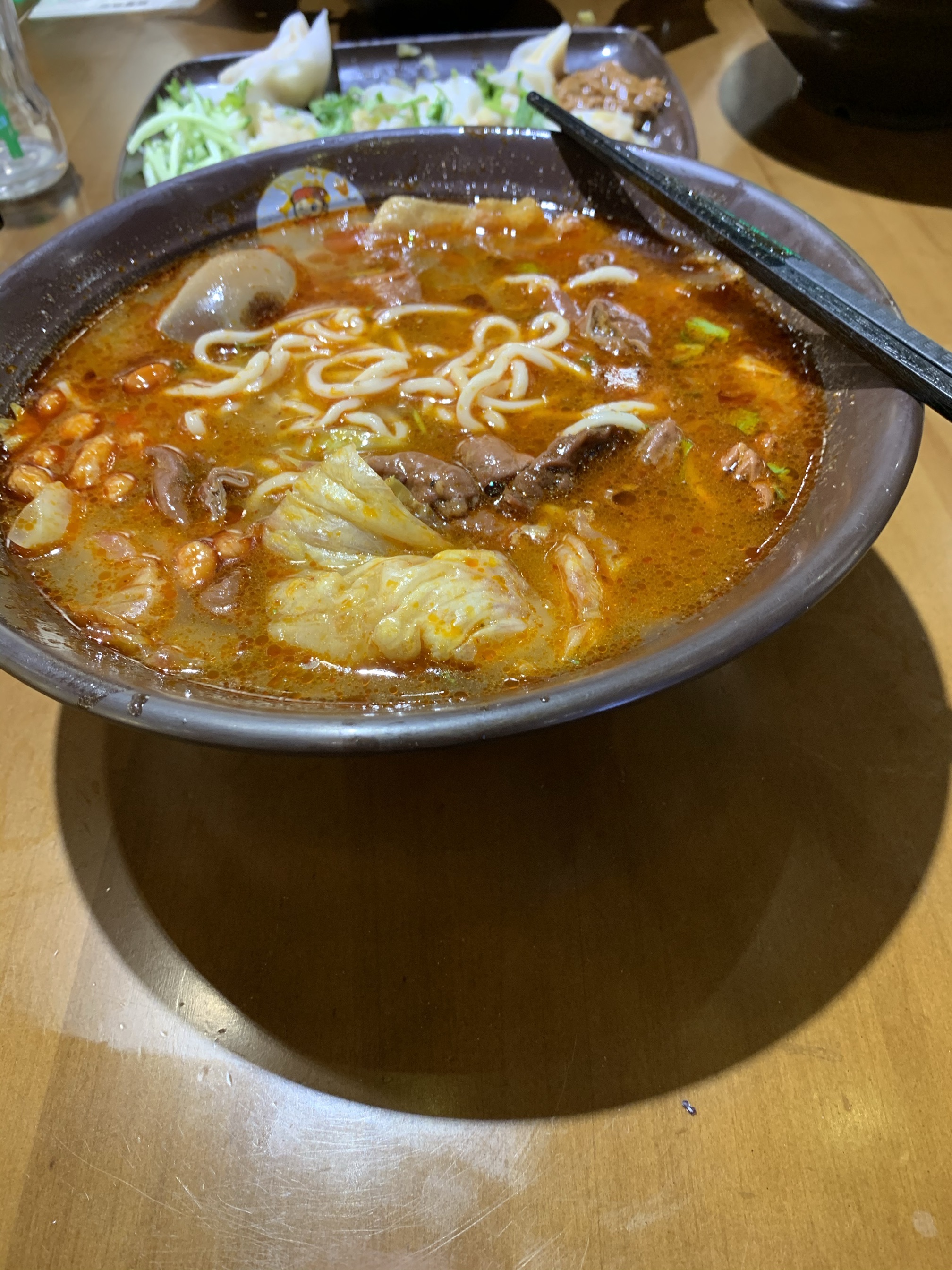位于亦庄创意生活广场附近,和山姆会员店相通。几年前陪朋友来吃过他家的馄饨。有带汤的和麻酱的两种。我以前吃过虾仁大馄饨,味道还可以。这次过来吃了肥肠面,面条好吃,口感味道都可以,肥肠一般。他家的海带也是非常好,煮的很软。一次吃了好几个!也不太辣!吃多了容易渴。