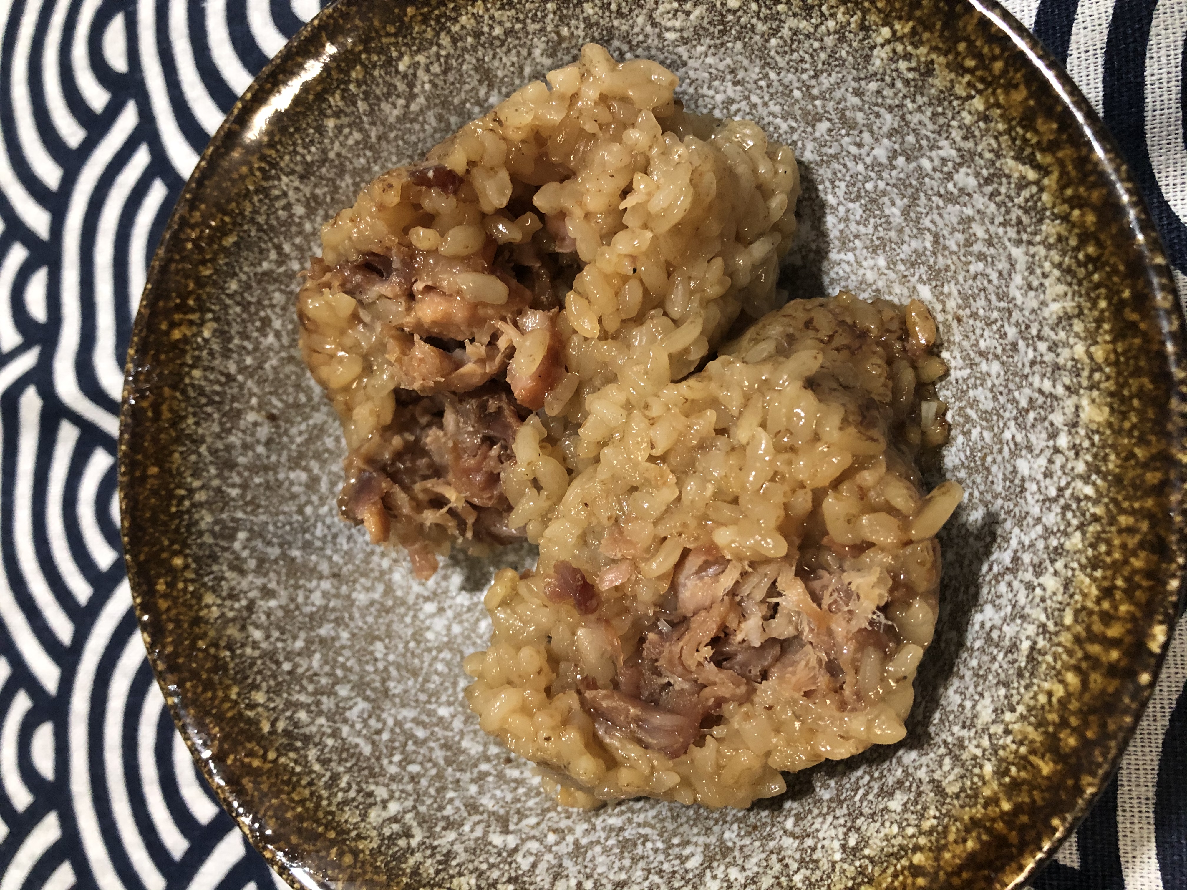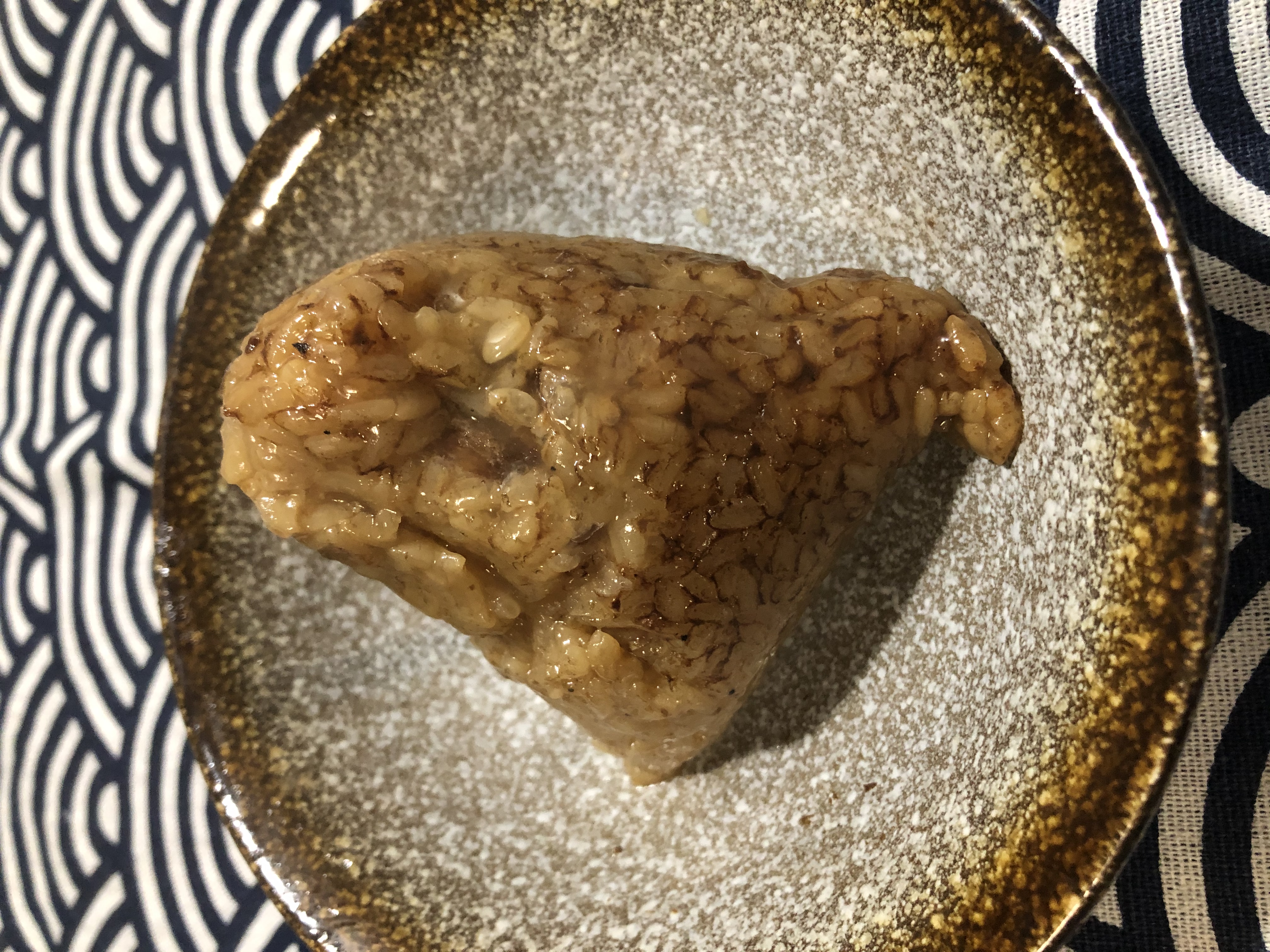 很早就听说了这里的两家粽子,既然来都来了,就买了两家得同款粽子回去吃,做个对比。 赵粽子的种类也是比较多了:招牌大肉粽(绿线)7,招牌鲜肉粽(白线)6,极品大肉粽(蓝线)11,麻辣火锅粽(蓝白双线)8,极品蛋黄粽(红绿黑三线)12,蛋黄鲜肉粽(黑线)8,板栗大肉粽(绿白双线)8,特色腊肉粽(红蓝双线)8,红豆椒盐粽(黑白双线)4,特色蜜枣粽(绿黄双线)4,好运八宝粽(红绿双线)5,红糖素心粽(黄线)4.5,清甜豆沙粽(红线)5,竹香清水粽(白花线)4。 这里买的是【招牌大肉粽】7,用筷子夹开的手感就明显感觉到赵粽子的糯米偏硬一些,没有那么糯。而且调味比较淡,单吃糯米部分的话没什么盐味,但吃得出很明显的花椒味。大肉的肉馅儿其实不少,整体都偏瘦,所以有点干有点柴。粽子也显得不是很油润。 【蛋黄鲜肉粽】8,撕开粽叶蛋黄已经暴露出来,没有完全包在糯米里。因为怕蛋黄干已经是蒸了很长时间了,结果还是干,这难道是蛋黄粽的通病?肉馅儿依然偏瘦偏柴,而且这个不仅米淡盐,肉和蛋黄也淡盐,奇怪,这个不是“咸”蛋黄吗。 总而言之,两家比较起来的话还是更喜欢另外一家的味道,虽然油了点儿但确实吃起来香。赵粽子相比较起来热量低些吧,毕竟少了很多肥油。