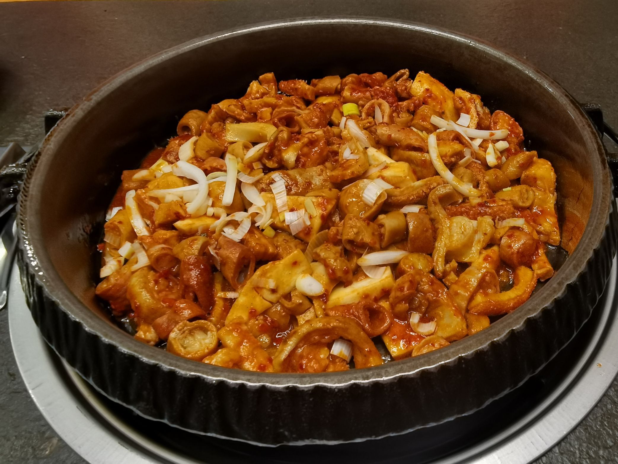 《晓世界》之国内环游篇📍吉林.延吉美食之旅 在延吉这几天,为了把想吃的东西尽快都吃到,可谓动足了脑筋,比如,像肥肠这种比较油腻的食物,对于平常很少吃晚餐的我们来说,就必须安排在中午了。 这里的肥肠不是猪肉的,而是牛肠,一大锅端上来之后,看着压力还挺大的哈哈,感觉三四个人吃会比较好,像我们只有两个人,就别点那么多配菜了,一份芝士一份豆芽足以。 |火辣辣肥肠^因为店名的原因,做好了被辣的准备,但其实可以点微辣的,辣度完全能够接受。主打虽然是叫肥肠锅,但其实里面有不少是毛肚,这点还比较好,比如对我来说,肥肠只能吃没有肥油的瘦的一小部分。男士吃肥肠女士吃毛肚,这样的组合也蛮不错的。芝士跟干锅总是很配,豆芽也是常见配菜而且能够吸点油,但总觉得吃到最后会有点腻,所以可以吃肥肠和毛肚的时候搭配泡菜一起。另外一定要喝点小酒哦。