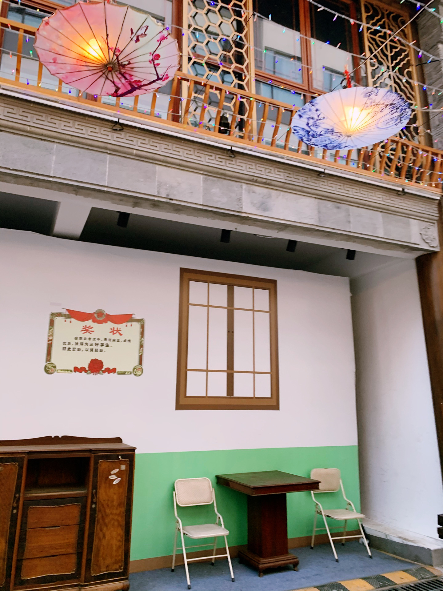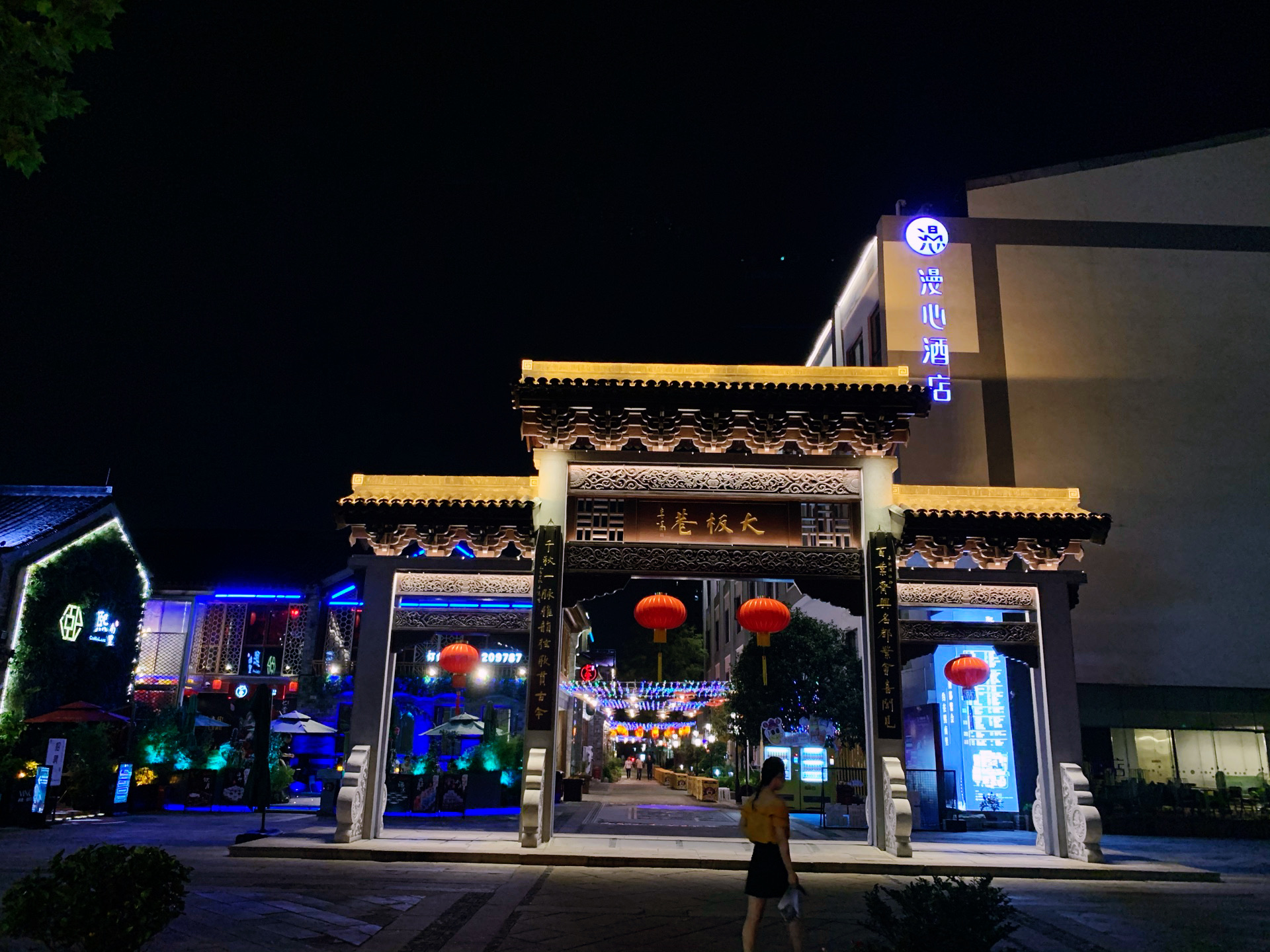 在甘熙故居附近有个大板巷,这里是去年九月底开街的,现在也是熙南里街区的一个重要组成部分。《同治上江两县志》载:“古习艺街也”,这里就是现在的大板巷了。大致位置是南起升州路,北至绒庄街。这里能看到非物质文化遗产的展示,从民间搜集来的老物件,据说墙上还有投影的是仇英的《南都繁会图》,别具一格。当然这里还有吸引人的餐饮店,这次过来时,发现灯火通明,游客挺多了。
