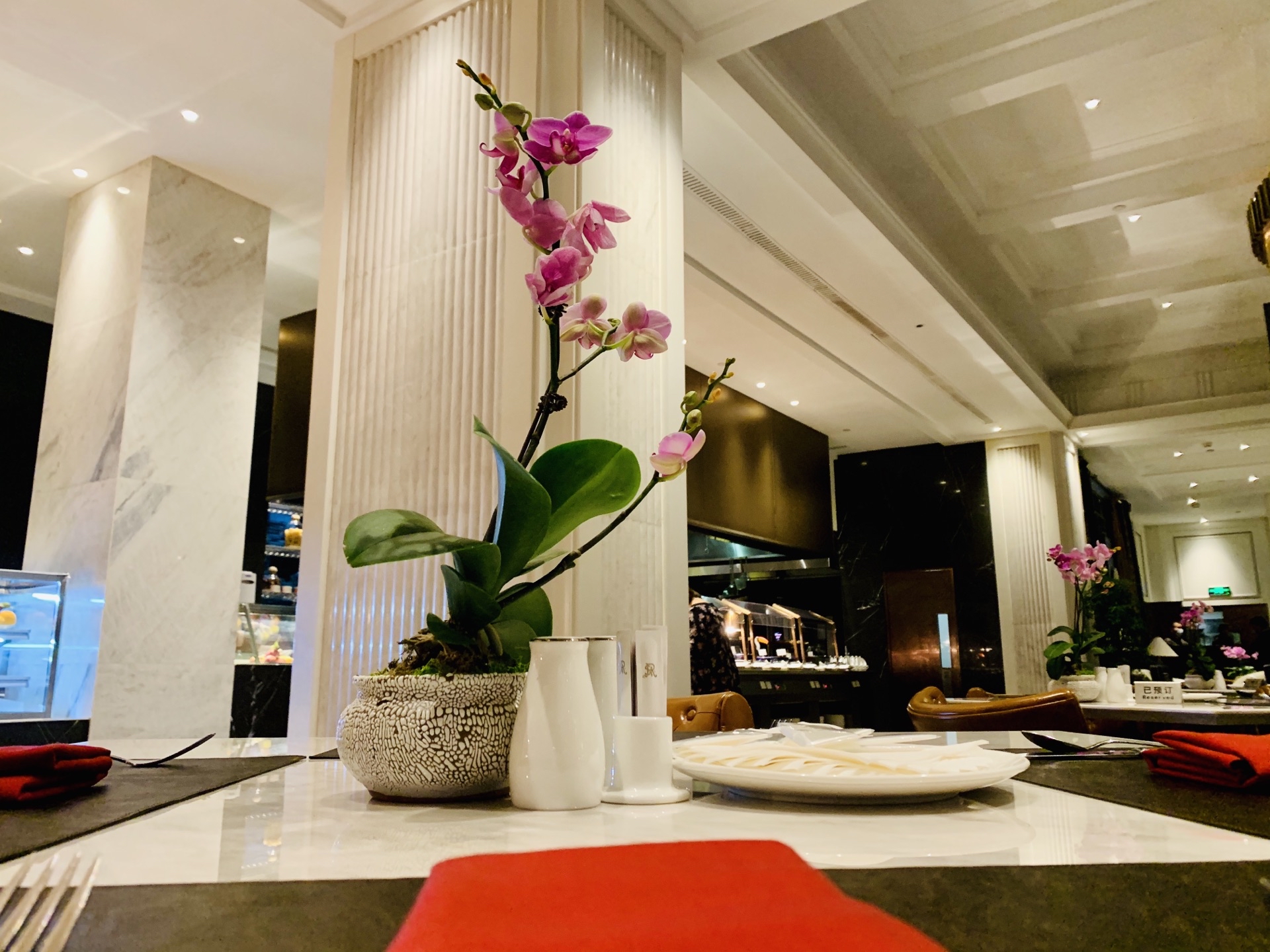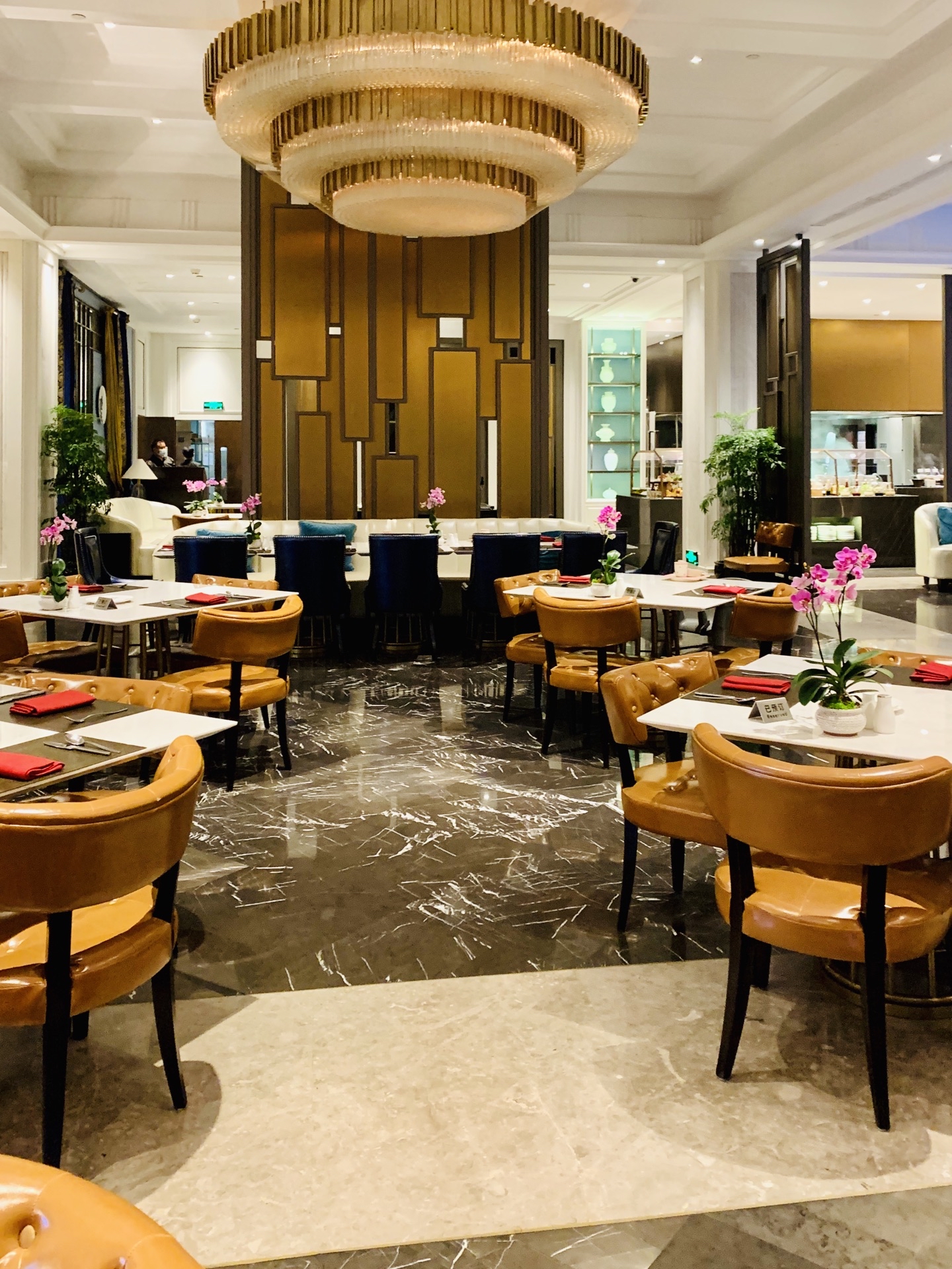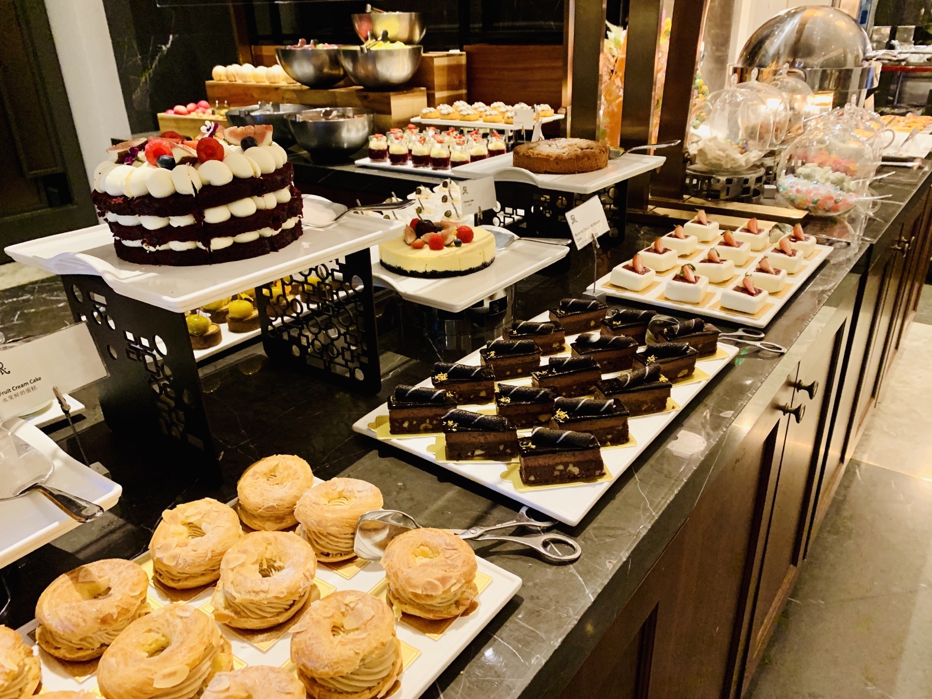 静安瑞吉是非常好的酒店,酒店大堂气派复古。第一次在这里吃自助餐,五星级的酒店环境和服务,最多三星的口味。双人的价格定价不高,估计很难要求食材原料有多好。烤肉和海鲜的口味极其一般,其中的青口贝和蟹腿简直到了难吃的程度;挽回面子的是甜品-芝士蛋糕、巧克力蛋糕奶油口味非常好,和位上的小鲍鱼。