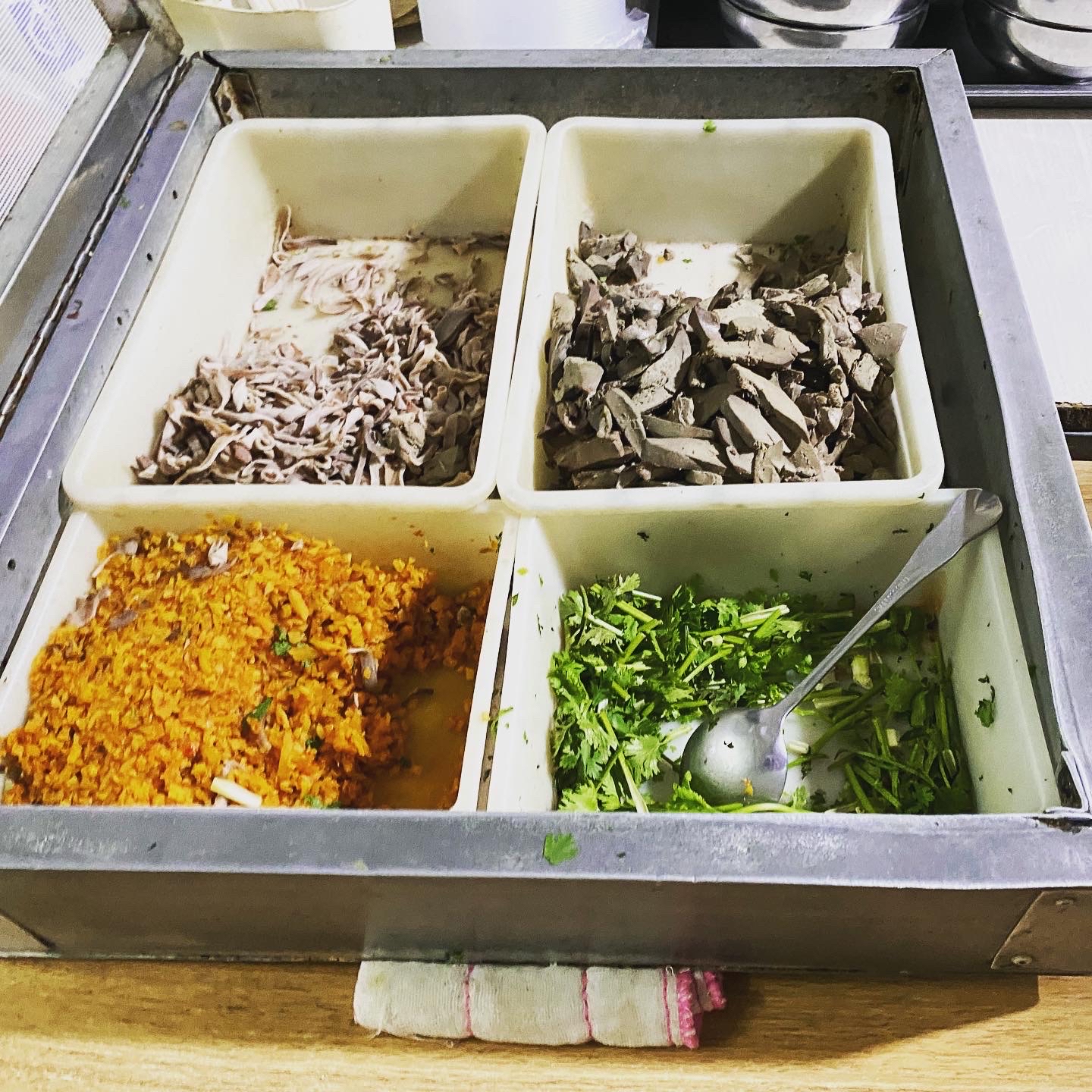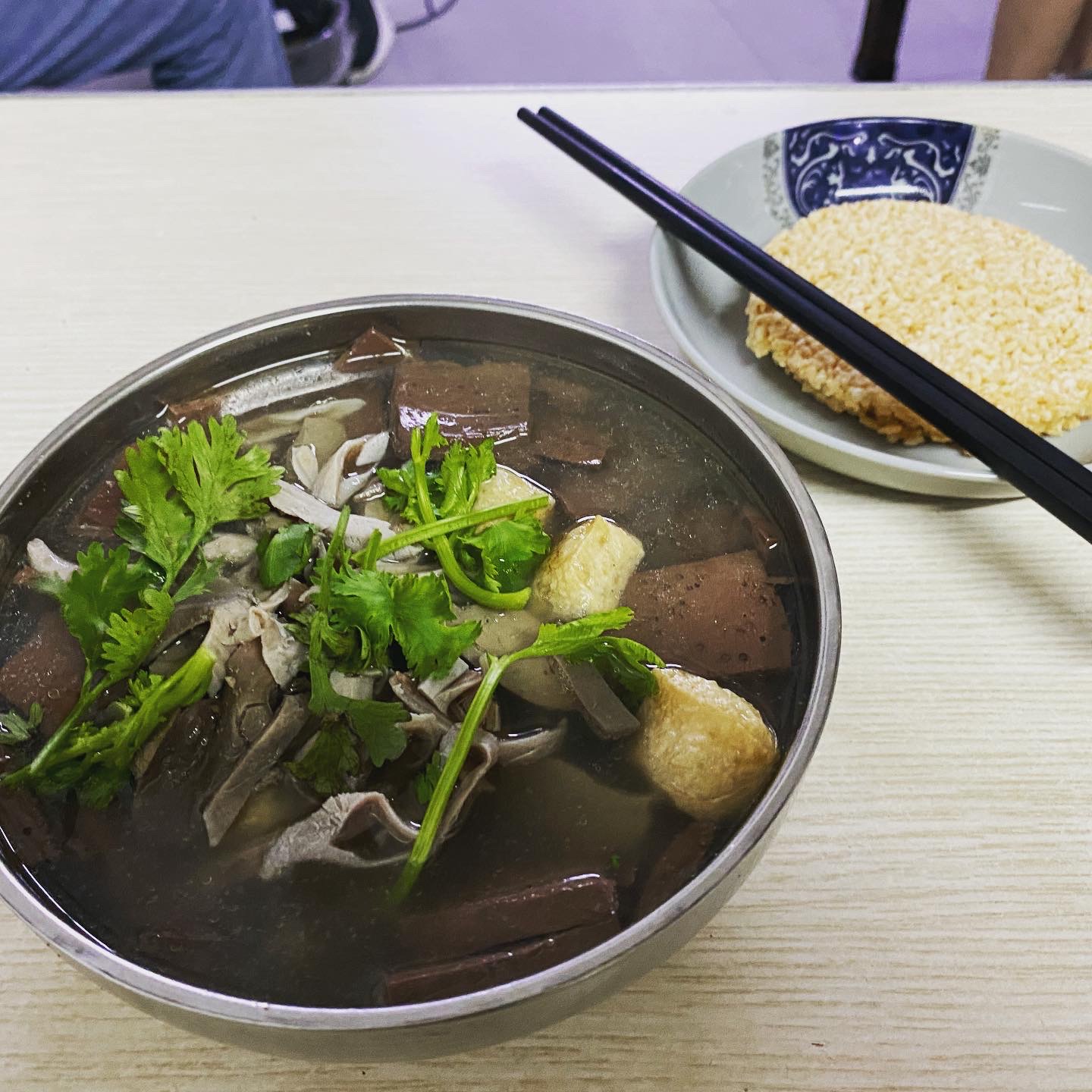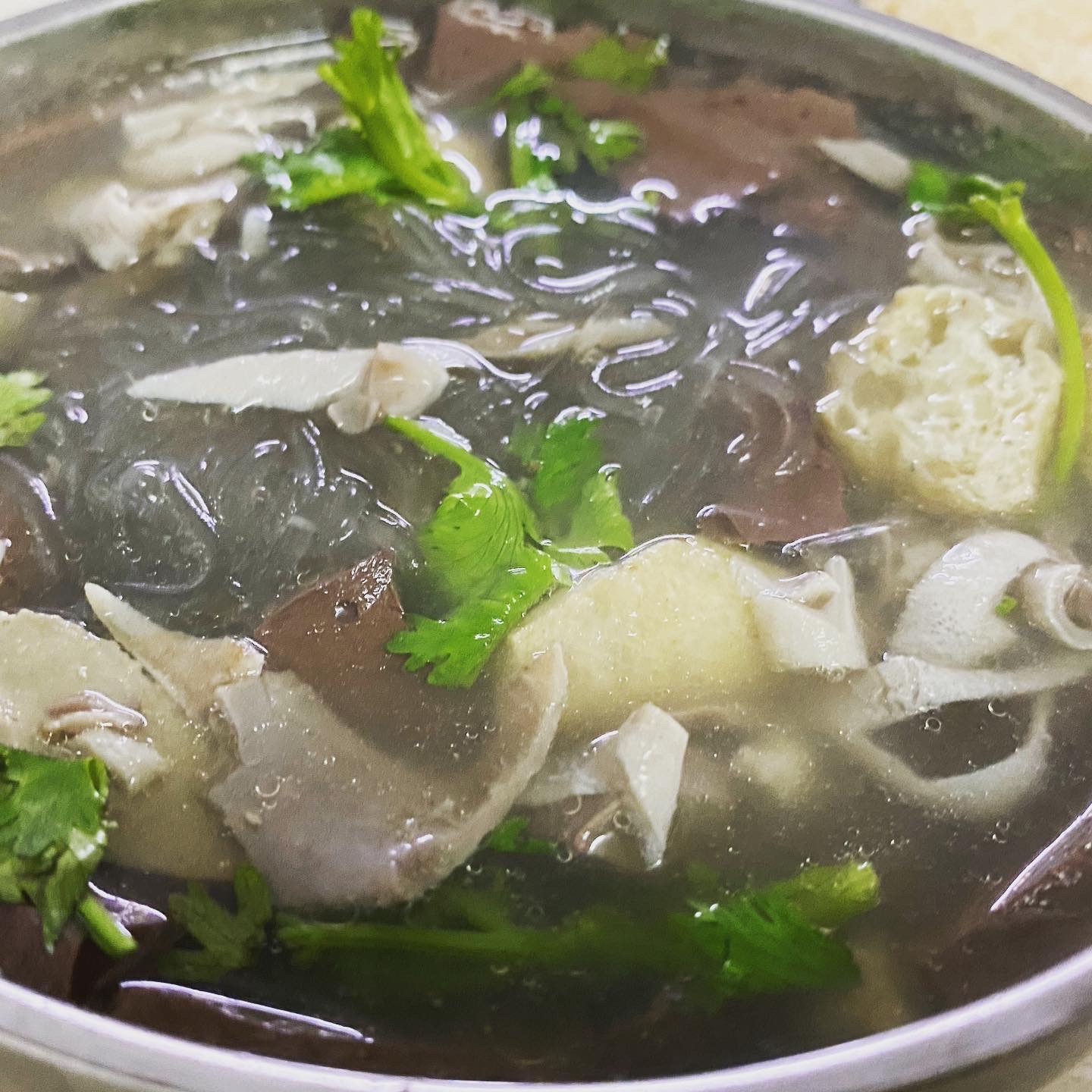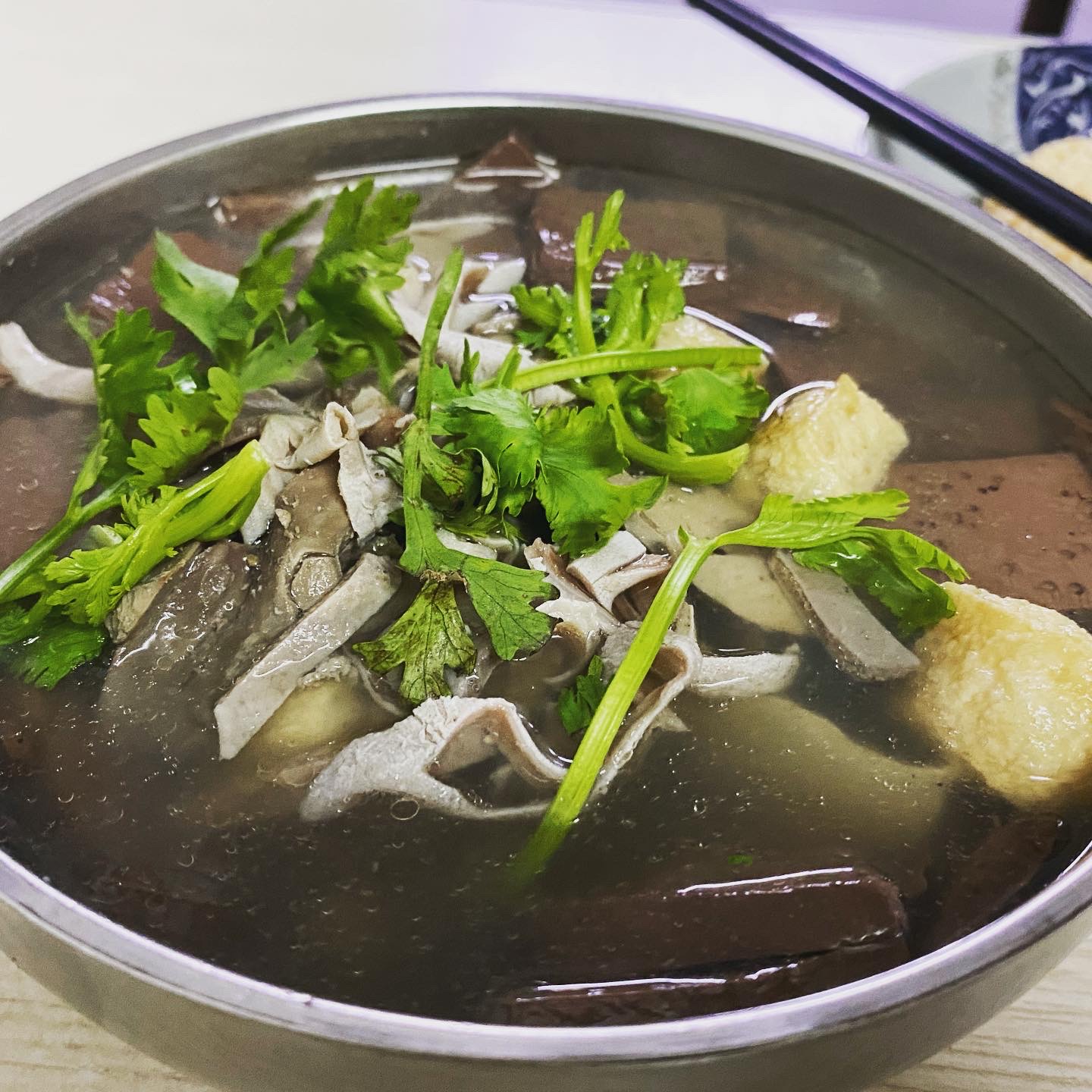 「鸭血粉丝汤」12一碗,非常实惠。碗不大,分量很足。里面有粉条,豆泡,鸭肠,鸭肝,鸭血,味道浓郁