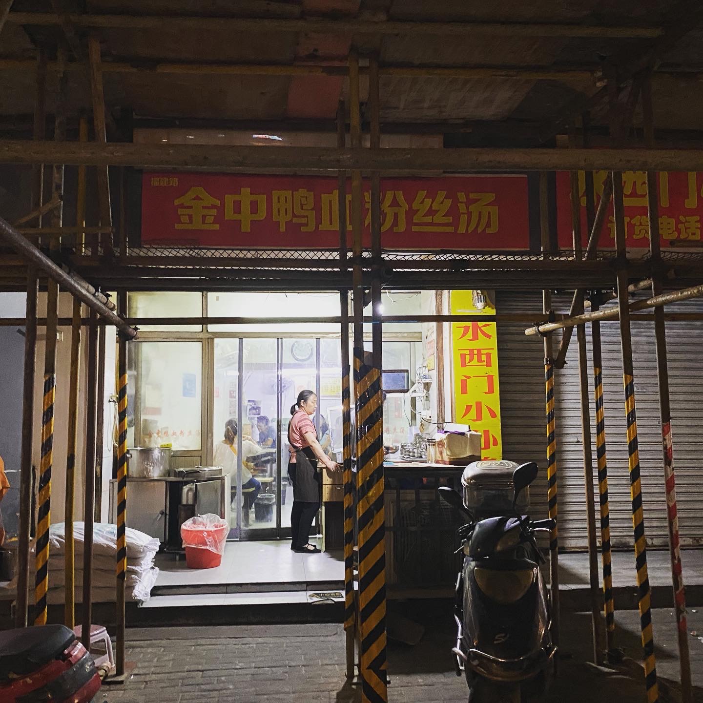 「鸭血粉丝汤」12一碗,非常实惠。碗不大,分量很足。里面有粉条,豆泡,鸭肠,鸭肝,鸭血,味道浓郁。香菜单价。「锅巴」锅巴相当于主食,把锅巴泡进鸭血粉丝汤中,味道鲜美,脆脆的锅巴变得绵软,而且吸收了汤汁,味道更好「辣油」还是比较辣,而且比较窜 [薄荷]环境: 整个楼应该外观在统一改造,店里面也很小,4-5张很紧凑的桌子 [服务铃]服务: 一般