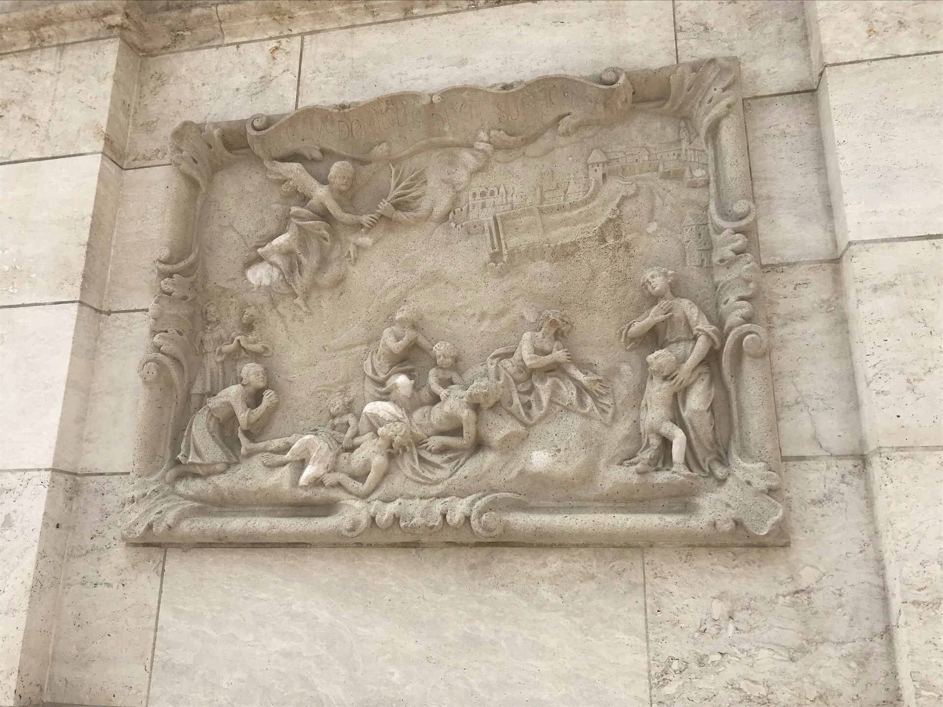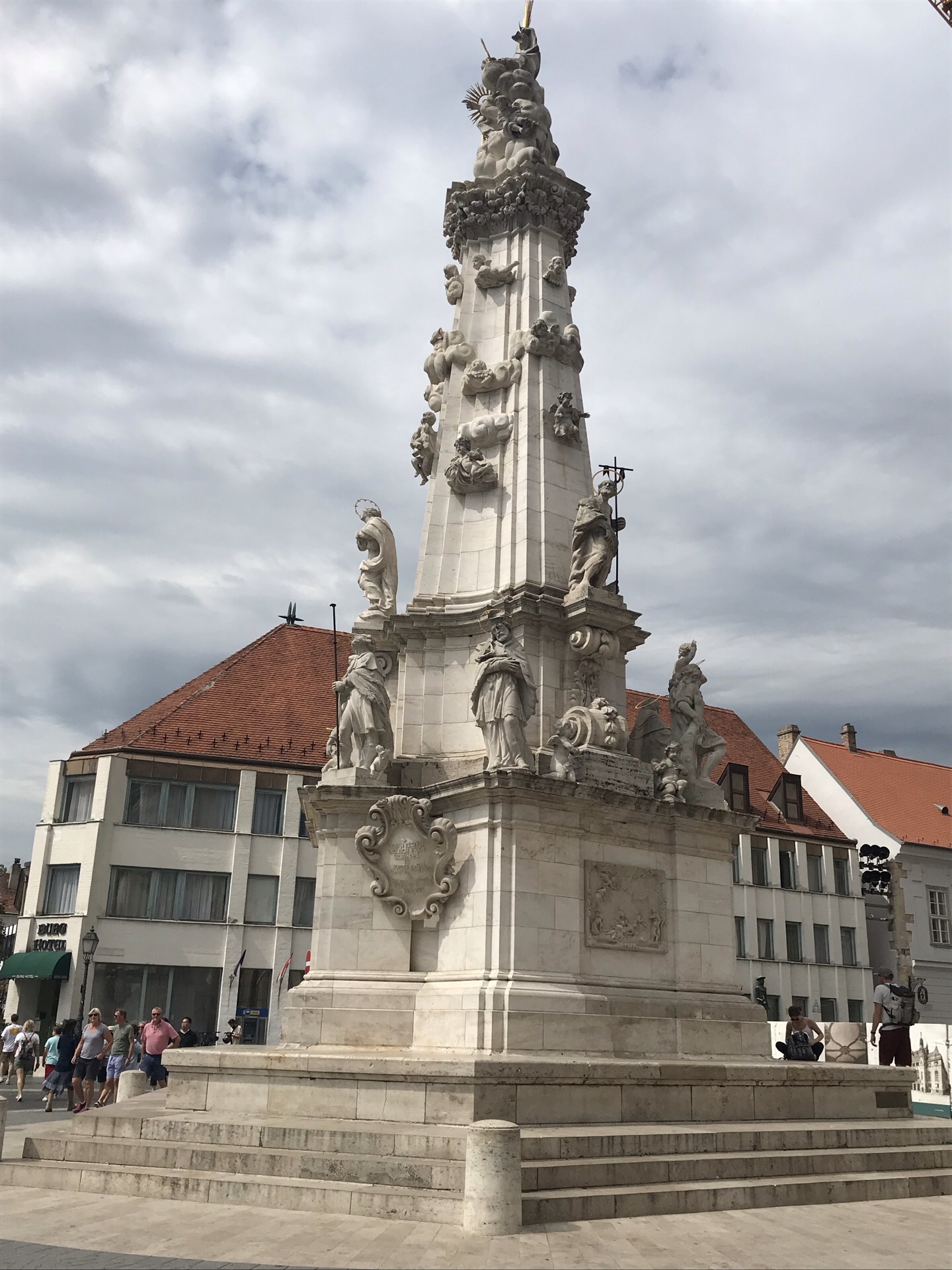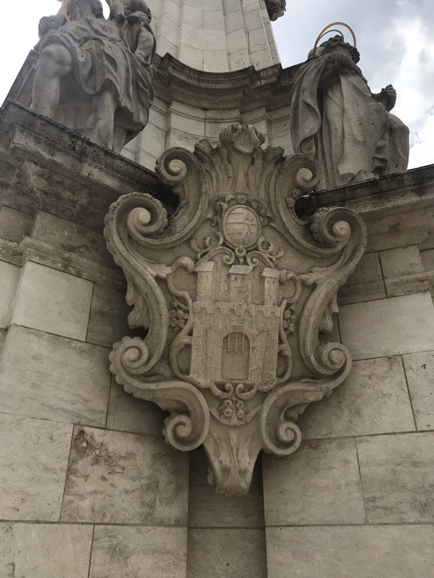 在柱子的各个立面上都有精细的浮雕,其正面还有一个巨大的徽章Holy Trinity Column的中文名字是圣三位一体柱,位于布达佩斯的西侧城堡山上,紧邻马加什教堂。在柱子的各个立面上都有精细的浮雕,其正面还有一个巨大的徽章。