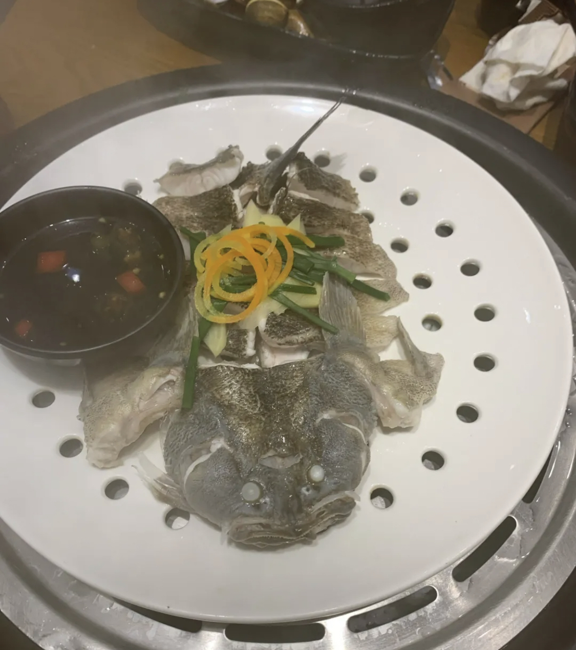 圈子老菜海鲜蒸坊(五角场店),这家店的亮点是食材特别好,品质上乘。石斑鱼,很嫩很好吃,淋上鲜酱油更好圈子老菜海鲜蒸坊(五角场店),这家店的亮点是食材特别好,品质上乘。石斑鱼,很嫩很好吃,淋上鲜酱油更好;加了花蛤和鸡汤的海鲜粥,鲜的没话说。