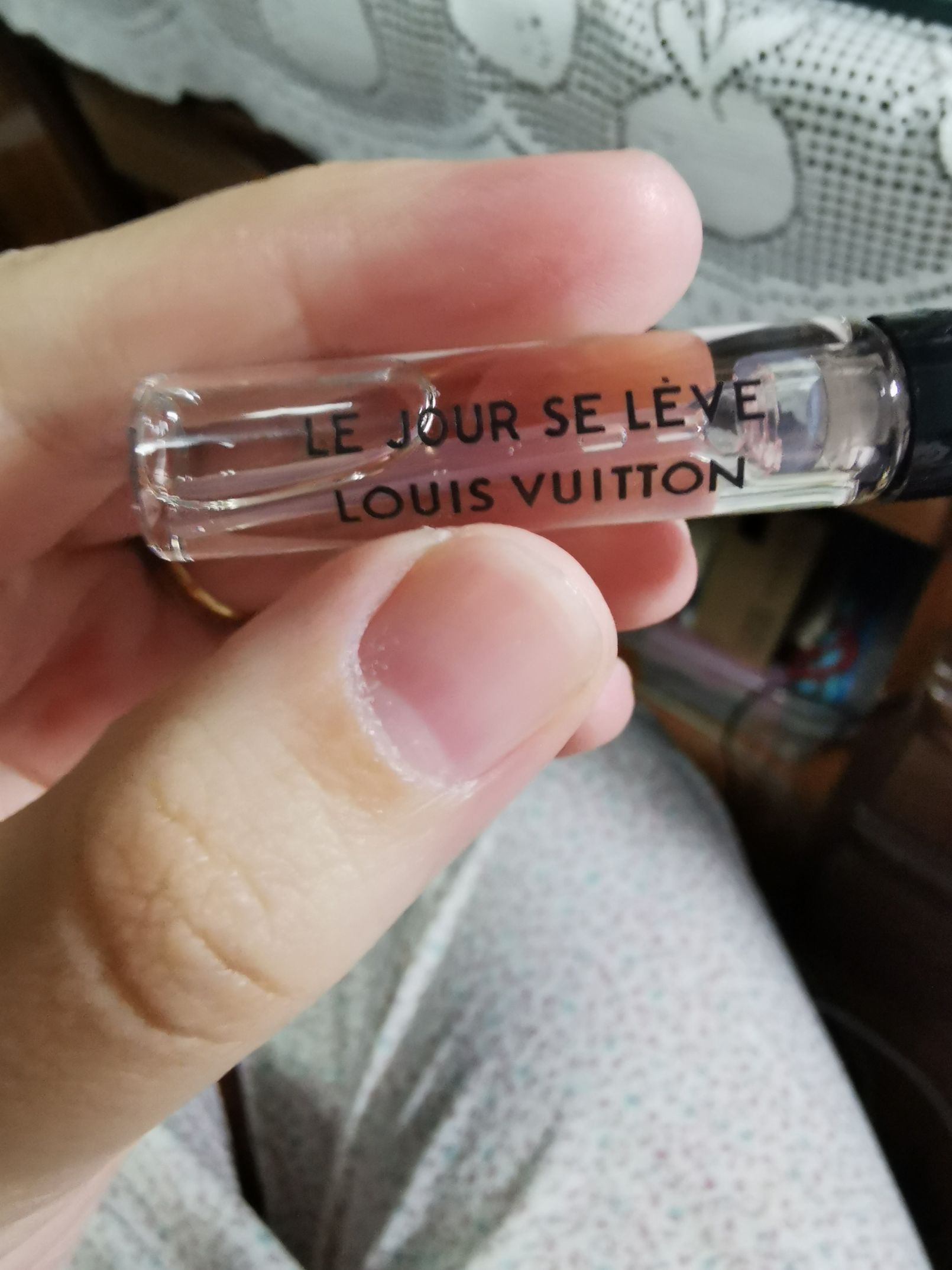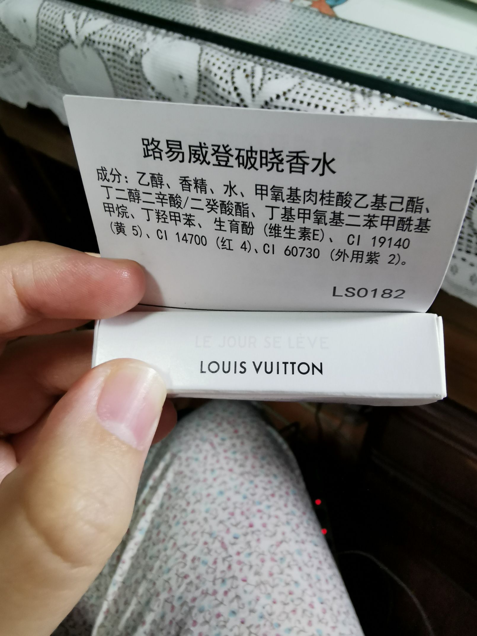 包装上没有写什么香型,查了一下某宝上写的主要香型是橘子,葡萄柚,黑加仑和中国双瓣茉莉偶然机会得到一直路易威登香水小样,名字叫破晓。包装上没有写什么香型,查了一下某宝上写的主要香型是橘子,葡萄柚,黑加仑和中国双瓣茉莉。