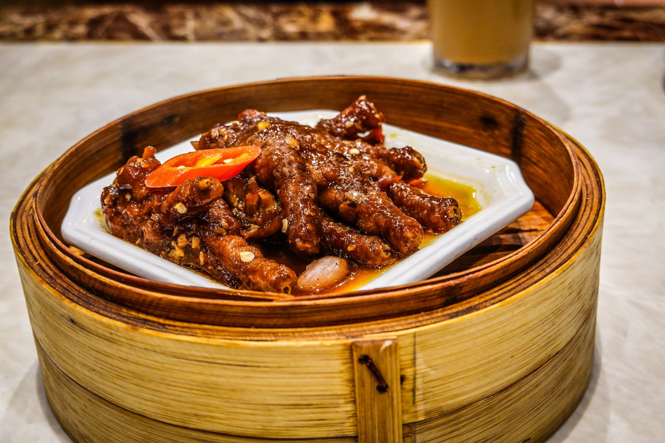 金网红米肠⭐⭐⭐⭐ 排名第一的点心,但是我觉得跟点都德的同款不能比,里面的馅儿太油了。 豉汁蒸凤爪⭐⭐⭐⭐⭐ 必点的港式点心,这家的味道酥烂入味,里面的花生米我也都吃了😌 麻辣鸭血⭐⭐⭐⭐⭐ 没想到随意点的一个川味的点心,居然做的如此地道😍,鸭血Q弹顺滑,麻辣味不多不少刚刚好👌🏻 豉汁蒸排骨⭐⭐⭐⭐ 中规中矩的味道吧,个人不太喜欢。 明虾烧麦皇⭐⭐⭐⭐ 也是招牌点心,说实话觉得跟虾饺的区别大概就是开不开口吧😂味道很不错,大虾很新鲜弹牙。