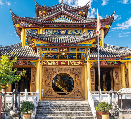 芒市五云寺是滇西小城历史最悠久的南传佛教古刹之一,傣语名“奘罕”,意为“金子寺”,坐落于城区街巷之间,将小城烟火、禅意古建、热带花木、傣家人文完美相融。寺院环境清幽静谧、古朴雅致,没有喧嚣人潮与过度商业化,氛围平和治愈,兼具历史底蕴与地域风情,是人文探访、静心祈福、慢节奏漫游的绝佳小众胜地。 五云寺地处芒市城区,却闹中取静,自带小城独有的舒缓与安宁。周边民居错落、市井气息温润,没有闹市的拥挤嘈杂,一入寺门便隔绝尘嚣,瞬间沉浸在宁静祥和的氛围中。庭院开阔整洁,步道平缓舒适,行走其间节奏自然放缓,让人卸下浮躁,身心松弛。无论是独自静心游览、家庭祈福,还是文化探访,都能获得温和自在的体验,对老人、孩童十分友好。 作为芒市最早的佛寺,五云寺历史厚重、人文内涵丰富。始建于清康熙四年,因寺前五棵古青树上常年栖集白鹭,远望如五朵祥云缭绕而得名。寺内珍藏着历史悠久的“帕拉过勐”佛像与金塔“拱姆罕”,历经岁月沧桑与修复,依旧保留着庄严气韵,是傣汉文化交融、中缅佛教交流的重要见证。每一处建筑、每一件文物都承载着边城往事,极具历史与文化价值。 寺院建筑是典型的傣汉结合风格,美学特色鲜明。大殿为歇山式多重屋檐,层叠舒展、气势庄重,木构梁柱雕刻细腻,挂满传统佛伞、佛幡,尽显傣族工艺之美。院内金塔造型精巧,主塔挺拔,小塔环列,金光熠熠,塔尖缨络随风轻动,古朴又华丽。寺内古井清泉、古碑石刻错落分布,与建筑相映成趣,一步一景皆显匠心,观赏性极强。 院内花木繁茂,四季常青,为古寺增添温柔诗意。热带花木与本土绿植自然生长,三角梅热烈盛放,鸡蛋花清雅芳香,缅桂、榕树、芭蕉挺拔葱郁,绿荫如盖、花香清雅。花草不刻意雕琢,生机盎然,与金塔、殿宇、石板路交织成画。阳光穿过枝叶洒落斑驳光影,微风拂面,禅意悠然,随手一拍都是充满傣乡韵味的文艺画面,静谧又治愈。 五云寺整体氛围清净平和,香火宁静,充满质朴的信仰气息。没有喧闹嘈杂,只有信众的虔诚与游人的轻语,处处透着安宁与祥和。寺院免费开放,管理有序,游览友好,路面平缓,无陡坡台阶,亲子出行、推婴儿车均轻松便捷。周边傣味餐饮、庭院客栈丰富,饮食淳朴、住宿舒适,可沉浸式体验芒市市井烟火与慢生活节奏。 整体而言,五云寺是以小城静谧为底色、千年古寺为韵味、傣乡禅意为灵魂的优质人文景点。它将历史、建筑、信仰、花木与市井生活自然相融,不张扬、不浮躁,以最本真的姿态展现芒市独有的温柔与底蕴。 如果你偏爱清净小众、喜爱古建人文、向往禅意慢旅行,五云寺一定会成为你滇西之行中一段宁静难忘的回忆,在祥云古寺与花香之间,感受小城最纯粹的治愈与安然。