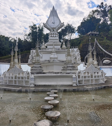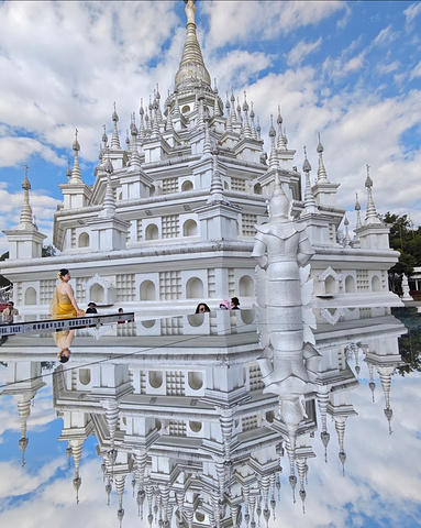 勐焕银塔坐落于芒市雷牙让山顶,是滇西小城极具标志性的人文与自然相融地标,以纯白傣式建筑、高空观景视野、禅意庭院花木、浪漫夜景灯光为核心特色,与大金塔隔山相望,整体氛围圣洁宁静、治愈唯美,是人文观光、拍照打卡、亲子慢游、夜景休闲的必游胜地。 银塔地处城市高地却清幽静谧,登顶可俯瞰全城风光,视野开阔、空气清新。景区整体以圣洁白色为主调,从山门、步道到主塔、群塔均为素雅纯白,置身其中仿佛进入一片纯净空灵的禅意世界。远离闹市喧嚣,环境干净雅致、氛围平和,行走其间让人内心沉静,无论是静心游览、祈福放松,还是休闲漫步,都能感受到强烈的治愈感与舒适感。 建筑美学是银塔最突出的亮点。主塔高66米,造型典雅大气,80座小塔环绕簇拥,形成众星捧月之势,层次分明、气势庄严。塔身雕刻细腻,充满傣族传统工艺美感,365个风铃随风轻响,清脆悦耳,禅意十足。景区内佛手雕塑、转经筒、天空之镜等景观设计精巧,既彰显南传佛教文化底蕴,又极具现代审美,拍照出片率极高,随手一拍都是干净治愈的大片。 庭院花木与高空景致相得益彰。园内热带绿植繁茂,鸡蛋花、三角梅、缅桂等花卉点缀其间,白、粉、红相间,与纯白建筑相映成画,生机盎然又温柔诗意。高空观景台可远眺芒市城区、田园、群山,甚至缅甸边境山峦,白天蓝天白云相伴,傍晚落日晚霞铺满天空,夜晚灯火璀璨,四时风光各不相同,观赏性极强。 景区体验友好,老少皆宜,可玩性与舒适度兼备。园区步道平缓,观光车便捷,减少登山劳累,对老人、孩童十分友好。开放时间长,白天可赏自然风光,夜晚可览璀璨夜景,灯光亮起后的银塔梦幻浪漫,氛围感拉满。景区配套完善,休息区、指示清晰、服务贴心,游览节奏轻松自由,可快速深度感受芒市城市气质与民族宗教文化。 银塔不仅是景观地标,更是芒市傣、汉、东南亚文化交融的重要载体。建筑风格、宗教元素、民俗细节处处体现地域特色,文化内涵深厚。游客在赏景拍照之余,可直观了解南传佛教文化与傣族人文历史,让旅程兼具美感与知识,是了解芒市城市精神与民族风情的窗口。 周边餐饮、交通便利,可与勐焕大金塔联动游览,半天时间即可感受“一金一银”双塔辉映的独特景观。傣味餐厅、特色小吃遍布山下,香茅草烤鸡、泡鲁达、舂鸡脚等地道美食,为旅程增添舌尖乐趣。整体性价比高、体验丰富,是芒市旅游不可替代的核心景点。 整体而言,勐焕银塔是以圣洁纯白为底色、高空视野为韵味、禅意文化为灵魂、浪漫夜景为亮点的高品质景区。它将人文建筑、自然景观、民族文化、休闲体验完美融合,气质独特、氛围治愈、颜值出众,不喧嚣、不浮躁,安静而有力量。 如果你偏爱纯净治愈风光、追求氛围感拍照、喜爱人文禅意景观,勐焕银塔一定会成为你芒市之行中最惊艳、最难忘的记忆,在圣洁银辉与边城风光间,收获内心的宁静与美好。