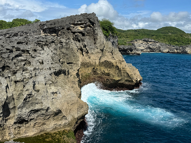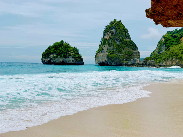 ✿ 上岛交通 • 从巴厘岛萨努尔码头乘快船,45–60分钟抵达佩尼达Banjar Nyuh码头,风浪较大,晕船需提前备药。 • 上岛后无公共交通,包车是唯一选择,山路崎岖颠簸,建议提前预定。 ✿ 三大必打卡景点 🌊 精灵坠崖(Kelingking Beach) 佩尼达地标,恐龙尾悬崖扎入深海,蒂芙尼蓝与宝石蓝分层海水超震撼。崖顶拍照出片,下滩路陡,往返约1.5小时,体力一般可只打卡观景台。 💎 钻石沙滩(Diamond Beach) 崖下白沙细腻,海浪拍击如钻石闪烁,果冻色海水清透见底。下滩路段湿滑,需穿防滑鞋,人少时能独享整片海湾,构图绝美。 🌪 破碎沙滩(Broken Beach) 天然火山岩环形拱门,海浪从洞口涌入声势壮阔。无需下滩,观景台就能拍出暗黑氛围感或波光粼粼的海蚀地貌,阴天晴天各有韵味。 ✿ 路线&时间 经典西线一日游:码头→精灵坠崖→破碎沙滩→钻石沙滩→返程,全程6–7小时,景点集中不绕路,节奏舒适。 ✿ 吃住简评 • 餐饮:选择少,以印尼炒饭、海鲜烧烤为主,口味中规中矩。推荐路边椰子/冰沙解暑,可自备零食。 • 住宿:集中在码头/东线,多为民宿、树屋,海景房氛围感足,但设施偏简易。适合想拍日出日落、避人流的人,追求奢华不建议住岛。 ✿ 总结 佩尼达没有精致的商业化,满是原始粗粝的自然之美。路途颠簸、路况一般,但三大景点的海景足够震撼,是值得为这片蓝奔赴的海岛。