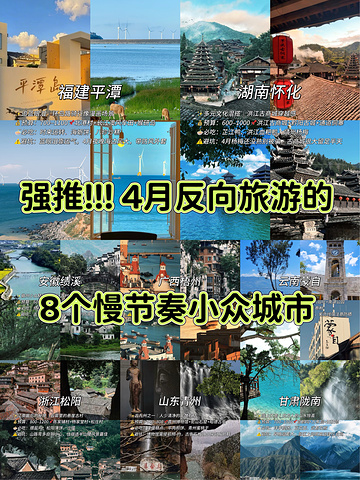 春季小城探秘:8个慢生活的宝藏之地🌸✨ 春天来了,正是出游的美好时节!如果不想去那些人挤人的网红城市,我建议你们探索一些宝藏小城,这里节奏慢、物价低,自然风光满满,尤其适合打工人和学生党们哦!下面就带你们走进8个春色正浓的小城,准备好收藏这条旅行攻略了吗? 1️⃣ 福建平潭 ✨ 蓝眼泪的绝美幻境 💰 预算:700–1100元 📍 推荐景点:北港村、长江澳风车田、猴研岛 🍽️ 必吃美食:时来运转、海蛎饼、八珍炒糕 ⚠️ 注意事项:蓝眼泪的出现有运气成分,海边风大,记得带外套哦! 2️⃣ 山东青州 ✨ 探寻古九州的悠久历史 💰 预算:500–800元 📍 推荐景点:青州博物馆、驼山石窟、昭德古街 🍽️ 必吃美食:隆盛糕点、牛肉煎饼、青州蜜桃干 ⚠️ 注意事项:博物馆需提前预约,逛古街时建议穿舒适的鞋子。 3️⃣ 浙江松阳 ✨ 江南裹着云雾的悬崖古村 💰 预算:800–1200元 📍 推荐景点:陈家铺村、杨家堂村、松庄村 🍽️ 必吃美食:煨盐鸡、松阳薄饼、沙擂 ⚠️ 注意事项:山路自驾要小心,住宿建议选择风景优美的半山腰。 4️⃣ 云南蒙自 ✨ 法式风情的过桥米线故乡 💰 预算:600–900元 📍 推荐景点:碧色寨、西南联大旧址、南湖公园 🍽️ 必吃美食:正宗过桥米线、年糕、蘸水卷粉 ⚠️ 注意事项:在碧色寨拍照要穿复古风衣服,超好出片哦! 5️⃣ 广西梧州 ✨ 骑楼城中的粤味生活 💰 预算:500–800元 📍 推荐景点:中国骑楼城、龙母庙、白云山 🍽️ 必吃美食:冰泉豆浆、龟苓膏、纸包鸡 ⚠️ 注意事项:豆浆早上7点前不排队,骑车逛老城更自在。 6️⃣ 安徽绩溪 ✨ 徽州的小众精华 💰 预算:600–900元 📍 推荐景点:龙川景区、徽杭古道、仁里村 🍽️ 必吃美食:绩溪炒粉丝、胡氏一品锅、挞馃 ⚠️ 注意事项:徒步古道时选择精华段,穿防滑的登山鞋会更安全。 7️⃣ 湖南怀化 ✨ 多元文化的洪江古商城 💰 预算:600–1000元 📍 推荐景点:洪江古商城、黔阳古城、通道侗寨 🍽️ 必吃美食:芷江鸭、洪江血粑鸭、靖州杨梅 ⚠️ 注意事项:4月杨梅还未成熟,古商城比较大,最好留出半天时间游玩。 8️⃣ 甘肃陇南 ✨ 北方人的山水惊喜 💰 预算:700–1000元 📍 推荐景点:官鹅沟、万象洞、西狭颂 🍽️ 必吃美食:洋芋搅团、豆花面、武都花椒 ⚠️ 注意事项:早晚温差大,景区之间距离较远,建议自驾游玩。 💡 小贴士 - 4月份南方常下雨,记得带把伞;北方早晚温差大,适当准备外套。 - 这些城市大多可通过高铁抵达,落地后租车或骑电瓶车游玩更方便。 - 主打慢节奏的旅行,一天安排1-2个景点,就能悠闲地享受旅途。 快来一起探索这些春日的宝藏小城吧,让你的旅程充满深度与美好!🌼🌍
