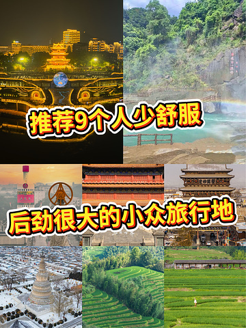 小众旅行地推荐 | 远离喧嚣的城市宝藏🏞️ 嗨!这些年来,我利用周末和假期游历了近百座城市。在这些旅途中,我发现那些热门旅行地虽方便,却常常人山人海,交通不便,耗费精力和财力。而我更偏爱那些不为人知、体验感强、既能享受美食又不贵的小城镇,每次旅行都让我感受到自然的魅力和人文的深厚底蕴。 今天就和大家分享9个小众但值得 revisit 的旅行地,让你纵情享受宁静与惬意。🌿 1. 山西·代县 这里鲜有人知,但雁门关是自古兵家必争之地。古迹如边靖楼、阿育王塔生动地记录了边塞的历史,还有打铁花、挠阁等非遗技艺保留至今,十分迷人。 2. 河南·许昌 作为三国文化的核心城市,许昌是曹操历史的故地。春秋楼、灞陵桥等古迹敞露着汉魏的魅力,别忘了去曹魏古城步行街品尝特色小吃,绝对让你大快朵颐!🍜 3. 广东·梅州 被誉为“世界客都”,梅州的客家文化热情四溢。围龙屋和桥溪古韵的客家建筑令人流连忘返,记得尝尝客家娘酒,松口古镇更是当年“海上丝绸之路”的起点,文化厚重。 4. 湖北·襄阳 这个城市允许你放孔明灯,古城墙映衬著汉江,见证了“铁打的襄阳”历史。古隆中与唐城影视基地重现盛唐风貌,春天汉江湿地公园的樱花也不容错过。🌸 5. 河北·邯郸 这里是3000年来从未改名的城市,响堂山石窟是皇家三大石窟之一,历史悠久,名胜古迹丰富,仿佛在历史书中漫游。 6. 云南·瑞丽 瑞丽靠近缅甸,犹如《边水往事》的美丽乡村。隔着铁栅栏可以看到缅甸的生活,同时这里有原始的莫里热带雨林,生态良好,令人向往。 7. 四川·宜宾 宜宾的空气中弥漫着酒香,这里被传为哪吒的出生地。滇南馆、合江门与李庄都是极具文化韵味的地方,是艺术与历史的交融之地。 8. 海南·文昌 远离三亚的喧嚣,文昌的野性海岸线保持着原始之美,零门票景点让你尽情享受自然。记得尝试正宗的文昌鸡和糟粕醋,口感独特。🍗 9. 江西·崇义 崇义拥有中国三大梯田奇观之一的上堡梯田,层层叠叠令人惊叹。阳明山的国家森林公园也是一个天然氧吧,上山的838级台阶,将美丽的风光尽收眼底。 这9个小众旅行地每一个都值得你一去再去,放慢生活的步伐,尽情感受自然与人文的和谐,收获独特的旅行体验吧!✨