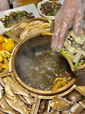 ⭐⭐⭐⭐⭐ 口味:5.0 环境:4.5 服务:4.8 性价比:5.0 来昆明老街必吃的野生菌馆子,人均100+就能实现菌子自由,地道山珍鲜到掉眉毛,逛老街顺路打卡超方便,游客闭眼冲不踩雷! 招牌木桶全菌锅仪式感拉满,中间鲜菌汤底咕嘟冒泡,外圈摆满见手青、黄牛肝菌、黄落伞等多种菌子,每款都配介绍卡,新鲜度肉眼可见。店员会提醒煮制时间,安全又贴心。开锅先喝原汤,无多余调味,全是菌子自带的山野清香,温润鲜甜,一口治愈疲惫。涮完菌子再下肉片,吸饱菌汤后嫩而不柴,鲜味翻倍。 菌香焖饭必点,米饭油亮软糯,混着菌丁、豌豆与胡萝卜,菌香浓郁入味,粒粒挂汁,空碗都想舔干净,妥妥炫饭神器。爆炒见手青火候到位,锅气十足,葱香与辣香激发菌子鲜醇,下饭一绝。民族风竹编杯装的酸角汁酸甜解腻,颜值与口感双在线,搭配菌锅刚刚好。 总体吃下来体验感特别好,从进店到用餐全程都很舒服。店里环境干净整洁,带着淡淡的老昆明烟火气,没有过度装修,却让人觉得放松自在。上菜速度适中,不会久等,分量给得很实在,两个人吃到撑也完全没问题。菌子品质是真的好,口感脆嫩、香气自然,没有杂味,能吃得出是新鲜当日货,不是冻货凑数。口味上咸淡适中,鲜香突出,不管是本地口味还是外地游客都能轻松接受,不会过于油腻也不会清淡无味。 店铺位于昆明老街核心区,逛古建筑、拍老街烟火气后用餐超合适。服务热情,会耐心讲解菌子吃法与煮制时长,体验感很好。 ✅实用贴士 1. 菌子务必煮够时间再食用,安全第一 2. 饭点人流量大,建议错峰前往免排队 3. 搭配云南特色蘸水,风味更地道 4. 木桶菌锅、酸角汁拍照氛围感拉满 整体性价比拉满,菜品新鲜、口味地道、位置便利,来昆明旅游想吃正宗野生菌,这家直接列入必吃清单,体验感满分!