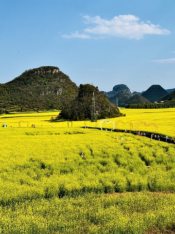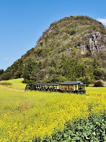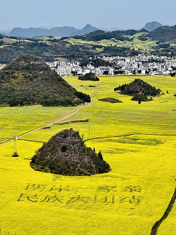 整体评分:⭐⭐⭐⭐⭐ 终于来打卡罗平金鸡峰丛了,不愧是《中国国家地理》认证的最美峰林,亲眼看到的震撼程度直接拉满,完全对得起长途奔赴,春日来罗平玩这里绝对是首选! 景点亮点 景区就在罗平县城东北边,交通还挺方便,放眼望去全是漫山遍野的油菜花,搭配一座座错落的喀斯特锥形小峰林,金黄配青黛,视觉效果绝了,妥妥的大自然油画,也是吉尼斯认证的世界最大自然天成花园,春日氛围感直接拉满,不管是散心还是拍照都超合适。 拍照攻略 1. 老尖山观景台:必去!登顶能俯瞰整片花海和峰林,360°全景视角,晨雾天和晴天拍都好看,风一吹花浪翻滚,随手拍都是大片。 2. 复古小火车:一定要坐!彩色小火车穿梭在油菜花田里,日系感拉满,轨道弯道处是绝佳机位,拍人像、风景都超有感觉。 3. 花田步道:低角度拍摄,用油菜花当前景,背后是连绵峰林,穿浅色系衣服站进去,温柔感直接拿捏,傍晚拍剪影更是美到不行。 交通方式 🚗 自驾:导航直接搜「金鸡峰丛景区」,昆明出发走高速大概3.5小时,景区有免费停车场,早到能避开人流,停车很方便。 🚄 公共交通:坐高铁到罗平站,出站换景区直通车20分钟就到;也能从县城打车,大概30元,拼车更划算,10元/人就能到。 实用贴士 1. 花期时间:2-3月是盛花期,最佳观赏时间是清晨6:30-8:30(晨雾缭绕像仙境)、傍晚17:30-18:30(日落光影绝美),景区7:00-18:00开放,别跑空。 2. 门票价格:门票30元/人,观光车30元/人往返,小火车50元/人,小火车强烈推荐坐,沉浸式逛花海还省力。 3. 穿搭装备:高原紫外线强,一定要做好防晒,带墨镜、帽子;穿白色、浅蓝等浅色系衣服,和油菜花超搭;穿防滑运动鞋,田埂路走路更稳。 4. 温馨提醒:花田是当地农民的庄稼,千万不要踩踏,沿着步道和观景台游玩就好,文明出行,守护这片美景~ 游玩感受 站在观景台上吹着风,闻着淡淡的油菜花香,看着花海和峰林连成一片,所有烦心事都能被治愈。小火车慢慢开着,窗外的金色花海不断后退,时间都好像变慢了,没有城市的喧嚣,只有田园的温柔,不管是和朋友、家人一起来,还是独自散心,都超惬意,来罗平玩一定要留足时间逛这里,绝对值回票价!