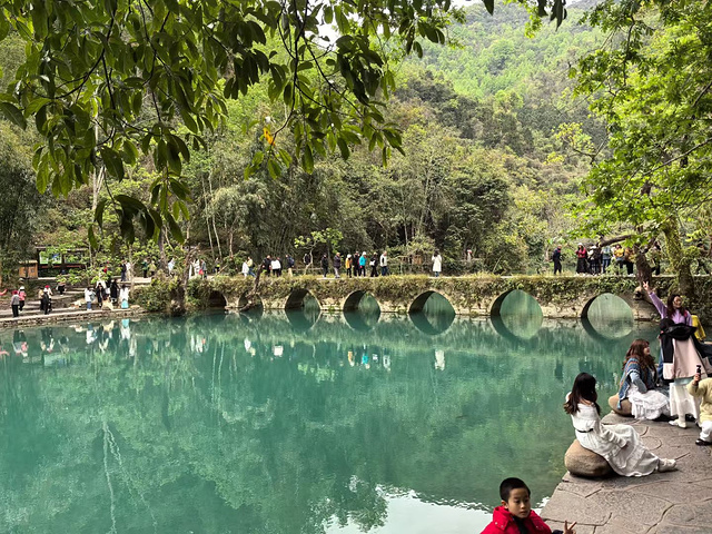 踏入荔波小七孔,一眼便被这里的山水深深治愈,堪称大自然馈赠的人间仙境。 古桥静卧碧水之上,百年石栏映着粼粼波光,古韵悠然。一路前行,潭水层次灵动,翡翠绿、清天蓝层层晕染,清澈见底宛如镜面。飞流瀑布穿梭山林,水声潺潺伴着清风拂面,空气里满是清新草木气息。 两岸奇峰叠翠,林木葱茏,移步皆是美景,抬眼皆为画卷。山泉叮咚,幽谷含香,每一处景致都干净纯粹,美得让人挪不开目光。置身小七孔山水之间,远离尘世喧嚣,身心都被温柔安放,这般绝色风光,来过便念念不忘。