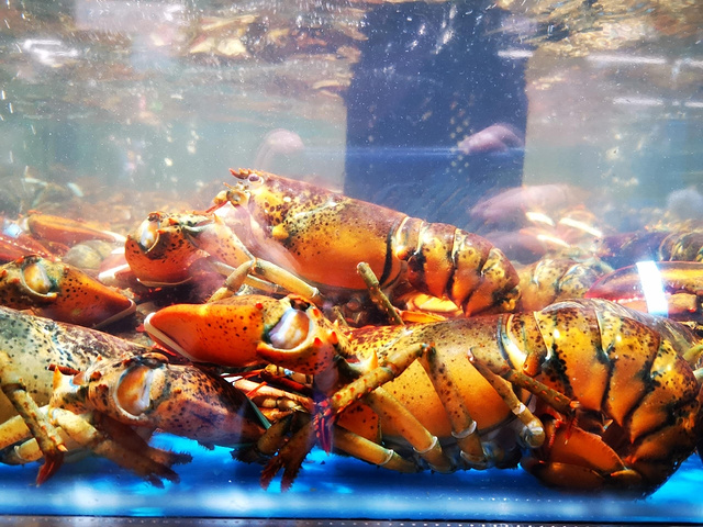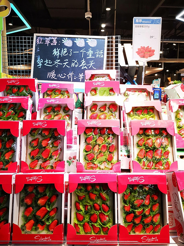 亲橙里的这家盒马鲜生在商场负一楼。几乎每次去这里都是人满为患,自助结账机出都是排队的人。 下了扶梯之后是卖水果糕点的区域。最近新鲜上市的草莓,真是诱人啊!一旁冷风柜里的盒子蛋糕,也是叫人眼馋。 当然,盒马鲜生的海鲜水产区最有特色。前一分钟还在水里蹦哒的龙虾、螃蟹,下一分钟成了你的盘中餐,的的确确的新鲜。 这里入住了很多知名餐饮品牌的小店,像极了一个美食广场。而在阿里员工的眼中,这大概是他们另一个食堂吧!