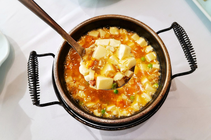 做创意杭帮菜的餐厅不少,柒园算是其中比较知名的一家,目前已经在各大商场开出三家门店。若有耳闻却未得一试,逮着机会了就前来黄龙万科店一探究竟。 🍽店名:柒园•三十年创意杭帮菜(黄龙K-lab店) 📍地址:学院路与文三路交叉口西南侧黄龙万科中心k-lab四楼 🚙交通:地铁2号线学院路站C口步行930米 ⏰营业时间:11:00-14:00,17:00-21:00 💰人均:123元 🌟环境 柒园黄龙万科店位于商场四楼南侧,电梯直达。看了门面上的介绍,豁然开朗,原来他家是龙井路柒号花园餐厅旗下的品牌。 餐厅的装修偏中式,很典雅,有不少卡座和包厢。朝南的落地窗采光很好,用餐的过程中甚至觉得有点热。 🌟菜品 👉珊汁沙律大虾 79元。大虾被装在鸟巢之上的蛋壳里,加上干冰特效,显得有点浮夸。加了一只出来,哇,真的超级大。外层的面粉酥脆,里面的虾肉紧实Q弹。不过吃几个就会有点腻。 👉纸包海苔鱼排 79元。这也是一道功夫菜。鱼排穿了好几层衣服再经油炸,外层的酥脆更衬托里面鱼肉的鲜嫩。蘸点甜辣酱吃,挺开胃。不过口味上和上一道大虾有点雷同,一前一后吃未免有点审美疲劳。 👉海胆石锅豆腐 59元。海胆豆腐沸腾着上了桌,看着就很有食欲。里面的食材超级丰富,除了豆腐、海胆,还有青豆、火腿、菌菇等等。鲜嫩滑口,暖暖的,很落胃。 👉白灼广东菜心 29元。低卡的菜心做法,现场淋酱汁,真是超爱!菜心很嫩很清爽,可惜前面别的菜吃的太多,不然我肯定能吃掉整份菜心。 👉招牌虾肉笋丁烧卖 18元。一份三只,样子挺好看。吃了一个,里面都是肉,没有虾和笋丁,即使沾了醋,还是觉得有点腻,吃不太下去啦。烧麦、包子之类,我还是喜欢加蔬菜馅料的多一点。 👉青柠百香果 58元。一大扎两个人根本喝不完的,酸酸甜甜口味尚可。 整个套餐吃下来,总体感觉就是配菜配的不太合理。大虾和鱼排同是水产,而且口味类似,如果能换掉一个菜,大概体验会更好一些吧。