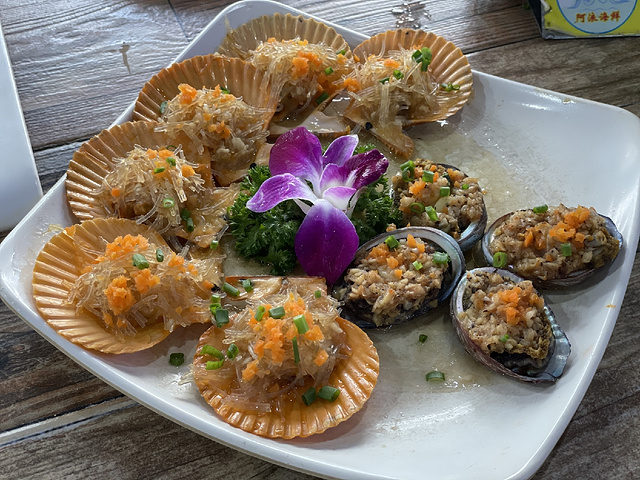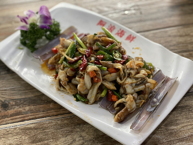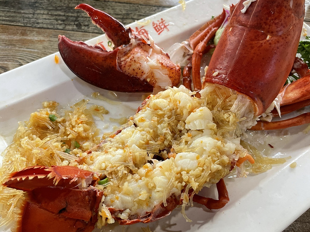 体验当地生活、美食文化👀 ,寻味街头🚶绝对是一件有趣的事。来三亚🏝旅游一定要到第一市场看一下,三亚著名的海鲜🦀和热带水果🍍批发地。晚上还有集市,卖一些小工艺品🎐、纪念品🗿什么,热闹极了💃。 📍位置:第一市场旁🏣,老字号连锁店。这里满满一街都是海鲜 加工店,选这家是因为门口挂着大众点评必吃榜的牌子🆒,能上必吃榜相信口碑绝对是有保证的😁。 果然💡,进店后有海鲜加工的报价牌📝,价格透明实惠😊,如果在店内买海鲜就免费加工。本人对选海鲜没什么自信😛,直接在店内点菜,省时省事✌。 蒜蓉开边蒸大龙虾,点了这个硬菜,价格比北京便宜太多了💰,新鲜的龙虾肉🍤真是紧实,肉质极致鲜甜🤩,蒜蓉和虾肉味道双重暴击味蕾,丰富感大爆棚🎉。 白灼基围虾,不用加什么辅料,简简单单一煮🥘,虾香🦐便弥漫开来,原汁原味的基围虾口感又鲜又嫩,肉质紧弹,剥皮蘸料入口,吃的不亦乐乎🤗。 香辣蛏子王,强烈推荐的一道菜👍,不愧是蛏子王,又肥又大,处理的十分干净,烹调香辣入味,美味到爆🥢,印象中近期没吃到比他家更好吃的蛏子王了😽。 蒜蓉粉丝鲍鱼,鲍鱼肉质细,肥美弹嫩🤘,入口略有胶粘感,配合蒜蓉和黄灯笼辣椒🌶 ,真是有滋有味🍭。 蒜蓉蒸扇贝,扇贝柱肉饱满紧实,真是非常新鲜,口感微甜😊。扇贝蒸出的鲜味和油脂被粉丝捕获,粉丝也有了海鲜的味道👻。 椰子饭,当地也叫椰子船🚤 ,海南传统特色美食。将糯米饭🍚 放在椰子肉🥥上,香香糯糯,色泽淡黄、晶莹透明,入口慢慢细品,椰香浓郁、清甜爽口,真是人间美味🙆 。 总结:不愧是必吃榜商户🙋 ,味道优秀、价格实惠,来三亚旅游值得特意过来打卡,完美圆你海鲜梦😽 。