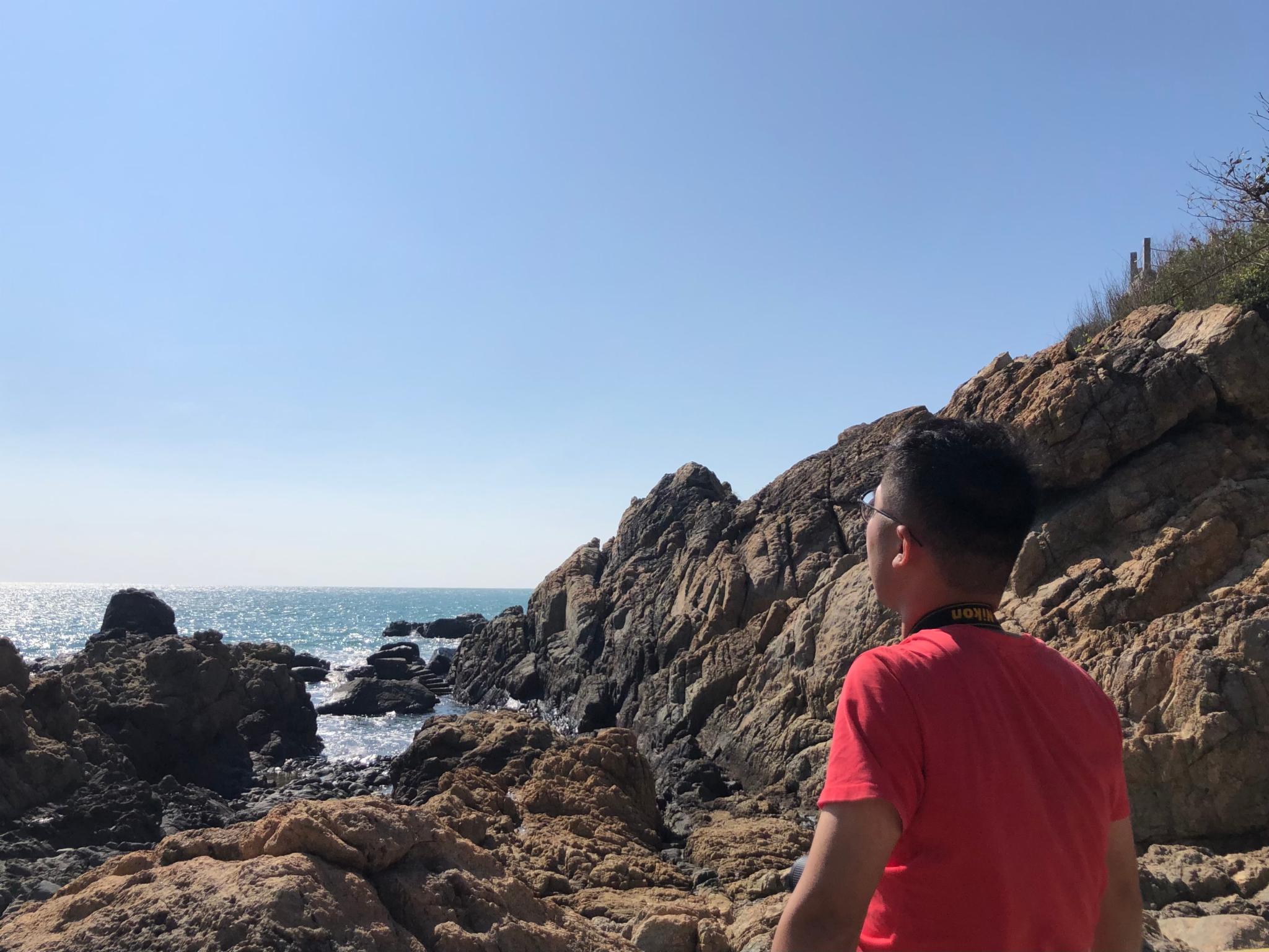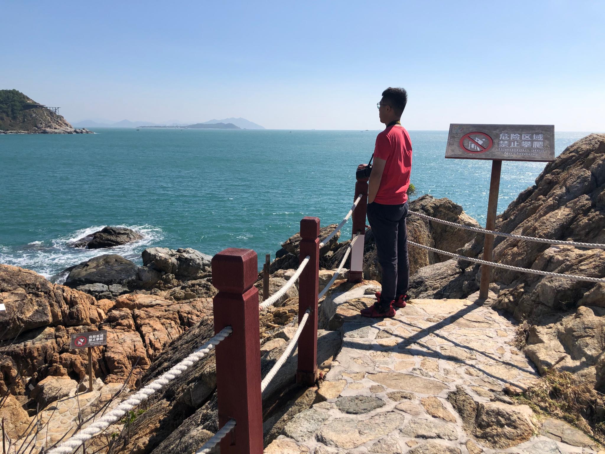 酒店到西岛不到1h车程,楼下公交站有直达公交。门船票是我提前在网上定好的,到窗口兑换好纸质票后就可以登船前往西岛,大概15min船程,船比较晃,最好提前吃晕船药。岛上有两个方向供游客游完,一个是牛王岭一个是渔村&海滩。上岛后首先到达的是旅客中心,有购买海上游玩项目或者打算购买的游客需要到这里登记/购买,乘车前往牛王岭的也需要在这里坐车。我和老妈先去的牛王岭,游客中心距离牛王岭大概2KM,一路上有不少可供拍照的地方,体力充沛的完全可以步行前往,因为乘车中途不能下车。另外乘车券别丢,半路会有人检查。