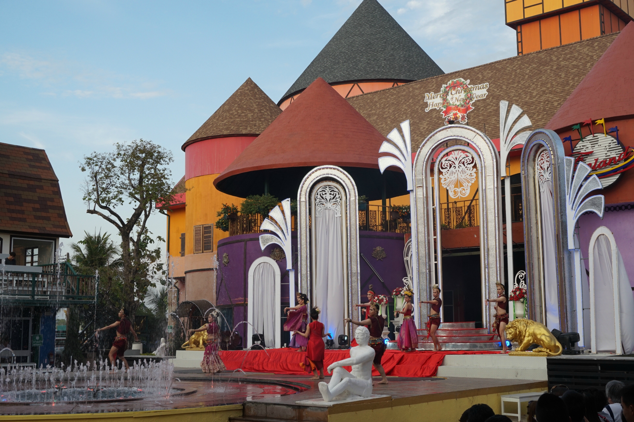 爱恋之都可以被称为芭提雅的迷你人妖城,跟团游的游客一般都会去,这个小城里面的建筑还挺有特色的,像欧洲小镇一样,在舞台那里每天都有人妖演出,这里还有几个小餐厅,餐食团餐的味道真的不怎么样,晚上还能和人妖拍照。