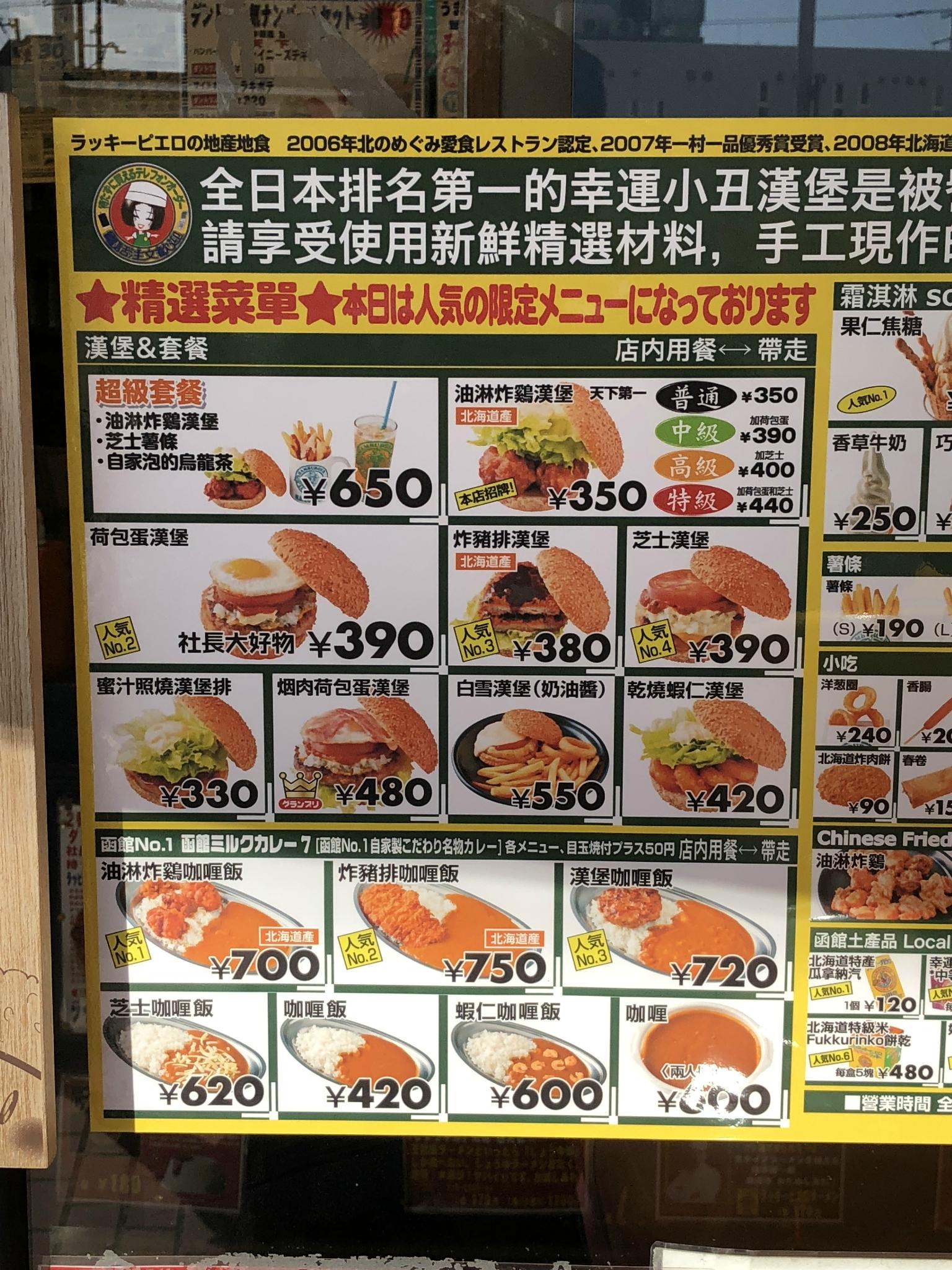在离开函馆之前,还特地去酒店楼下买了一个幸运小丑汉堡打包,准备在路上吃,因为太喜欢这个汉堡的味道了,在刚开店的时候就去买了,没排队,很喜欢这里的牛肉汉堡,物美价廉,里面的牛肉的口感太棒了,极力推荐大家去吃。