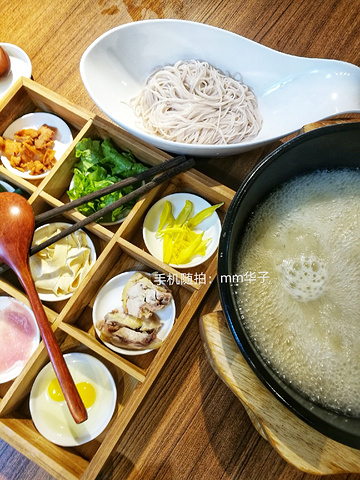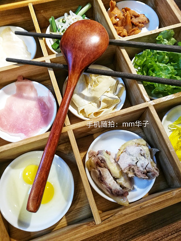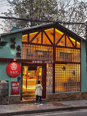 🌈其实,有时候避开大街,在小巷子里窜窜,往往有惊喜发现! 🌈今天,顺着昆明的五华山周边,沿着华山路走走,从华山南路来到了华山东路,居然发现一间特别的房子,走进一看,原来这间有着尖顶的房子是一家小吃店,就是位于昆明华山东路六十七号的__宝焱祥云南过桥米线! 🌈好奇心驱使米线控的我,忍不住要一吃解馋! 🌈果真是一家很佛性的米线馆,老板是一位超级大帅哥,态度超级好。不太大的小馆有两层,整体收拾的很温馨,还有一些小细节隐约着大暖男的细心,难怪店里的吃客真不少。听聊天有些是来昆明旅游的客人,都是慕名来看帅哥、来吃一碗口碑相传的云南过桥米线! 🌈确实,一碗有温度的米线是需要用心才能体现,而汤底是关键! 🌈没有复杂的品种,三款过桥米线融入了所有的心思和汤底的精华__水木清华过桥米线(五荤五素):清爽口味,淡雅清香!千滋百味过桥米线(九荤九素):浓郁、鲜甜、香,确实是千滋百味!湖光山色过桥米线(九荤九素,菌类),云南传统过桥米线的完美呈现! 🌈吃了很多家的过桥米线,发现这里的香酥别具一格:味道微甜、薄片、入口回味。 🌈除了过桥米线,还有豆花米线、佛系米线、小吃甜品等。 🌈这个“佛系米线”确实很独特,我也是第一次发现这样的做法:这碗米线是用过桥米线的汤烫出来的,不同于小锅米线的煮出来,比较温和。 🌈美食不在乎大餐,有时候一碗过桥米线就足矣!在宝焱祥,就很好! 🌈备注:过桥米线吃法步骤: 🌈一旦富贵(一蛋圆满富贵有) 🌈二如来运(二烫鲜肉运长久) 🌈三清叙道(三放熟肉随大道) 🌈四季花开(四放菊花祈吉寿) 🌈五福临门(五放祥瑞生鱼片) 🌈六六大顺(六放如意鸡蛋皮) 🌈七星高照(七放香酥香气足) 🌈八方来财(八放素菜海中青) 🌈九九同心(九放韭菜齐同心) 🌈十全十美(十放米线过桥圆) 🌈先荤后素,先生后熟,先喝汤再吃米线。M_华子带你逛吃逛吃之美食篇!