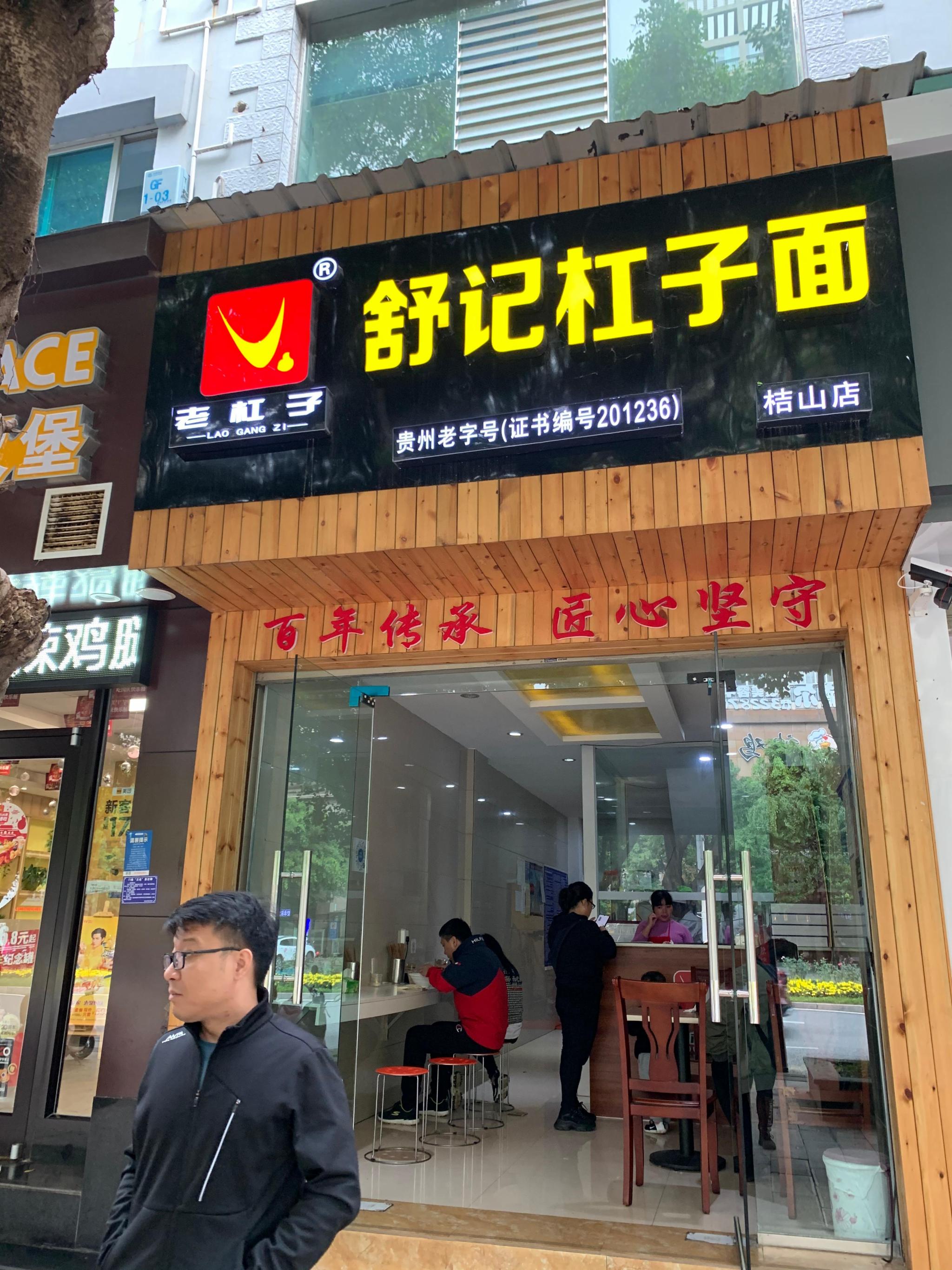 舒记杠子面在兴义鼎鼎大名,上世纪90年就被兴义市旅游局评为贵州名优风味小吃。他家有两个店,一个在新城区(桔山店),一个在老城区(大佛坊)。这次到兴义旅游,自然要探访一番。根据就近原则,这次探访的是位于新城区桔山大道的桔山店。