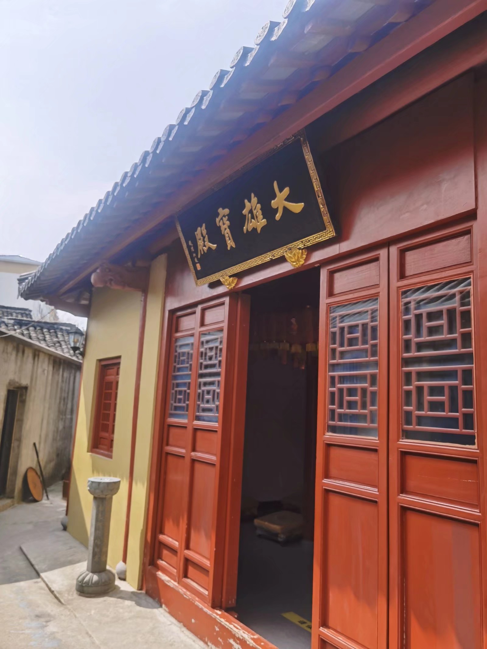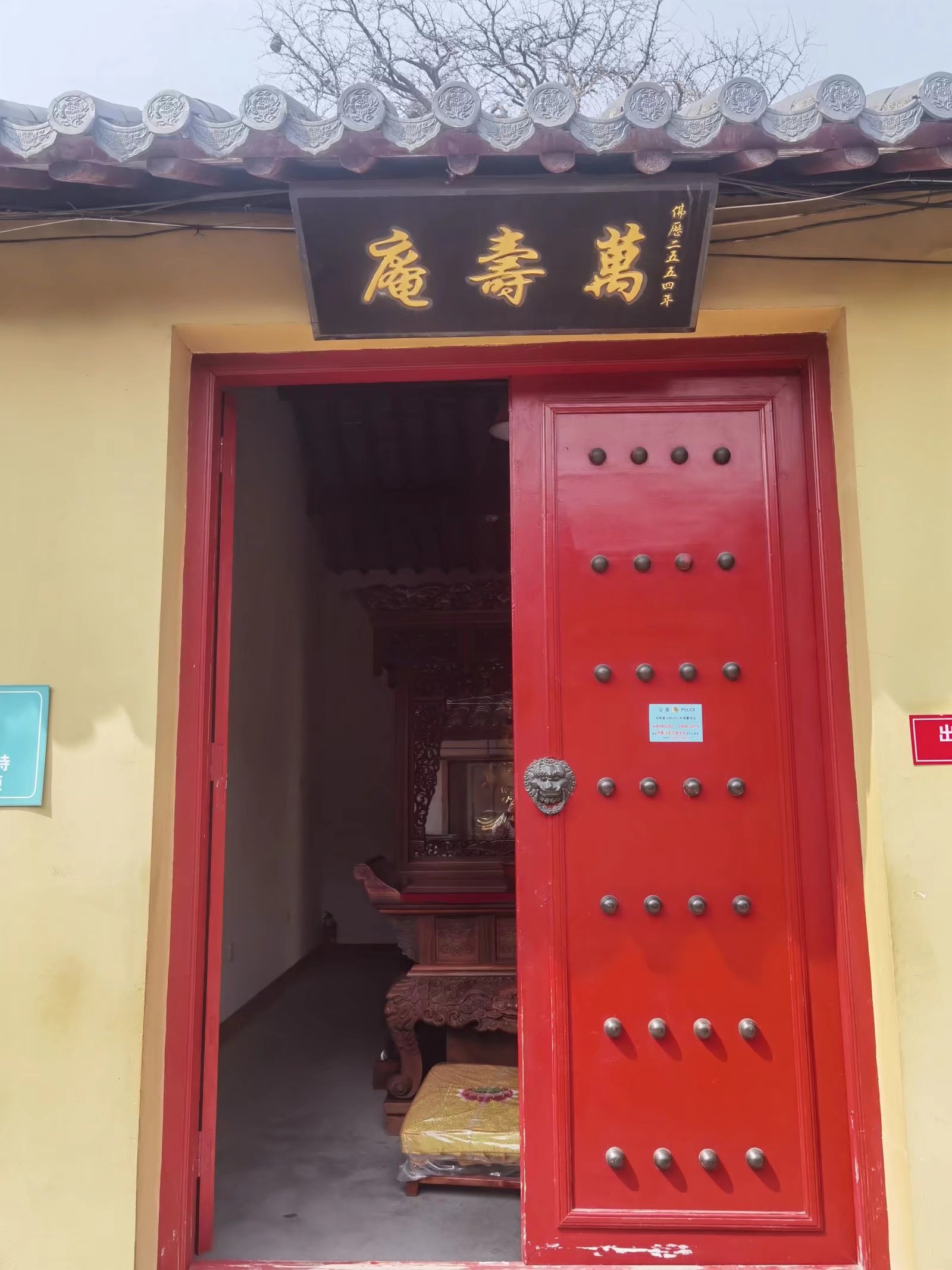 一块匾。庵里的大雄宝殿匾额上的“大雄宝殿”四个字,是赵朴初题书的,颇属珍贵。