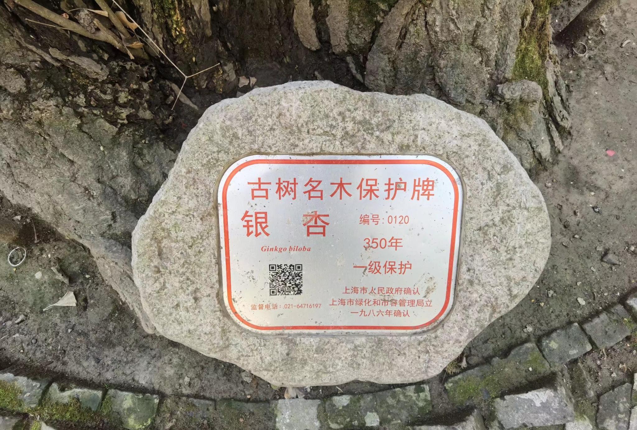 一棵树。庵里有一株古银杏,它是上海市古树名木保护第120号,树龄快要400年了。