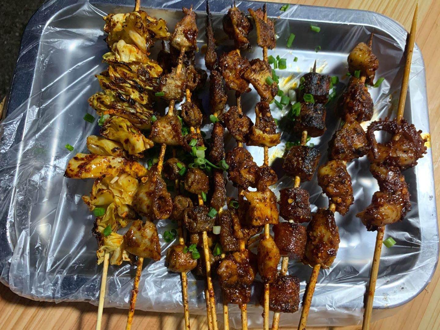 稍微好点的就是烤小肠,当地的特色烤品,糯香弹牙,油脂香味十足。